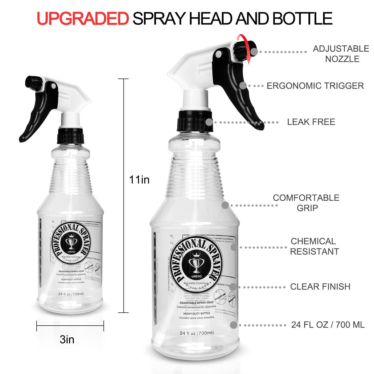- Clear Body & Better Trigger Design - Easy to use and clear bottle makes it easy to see contents and how much remains. Much lighter in weight and also safer than glass bottles. The unique design 3-finger trigger makes your fingers rest easily on it and the bottle fit comfortably in your hand, eliminating hand fatigue.