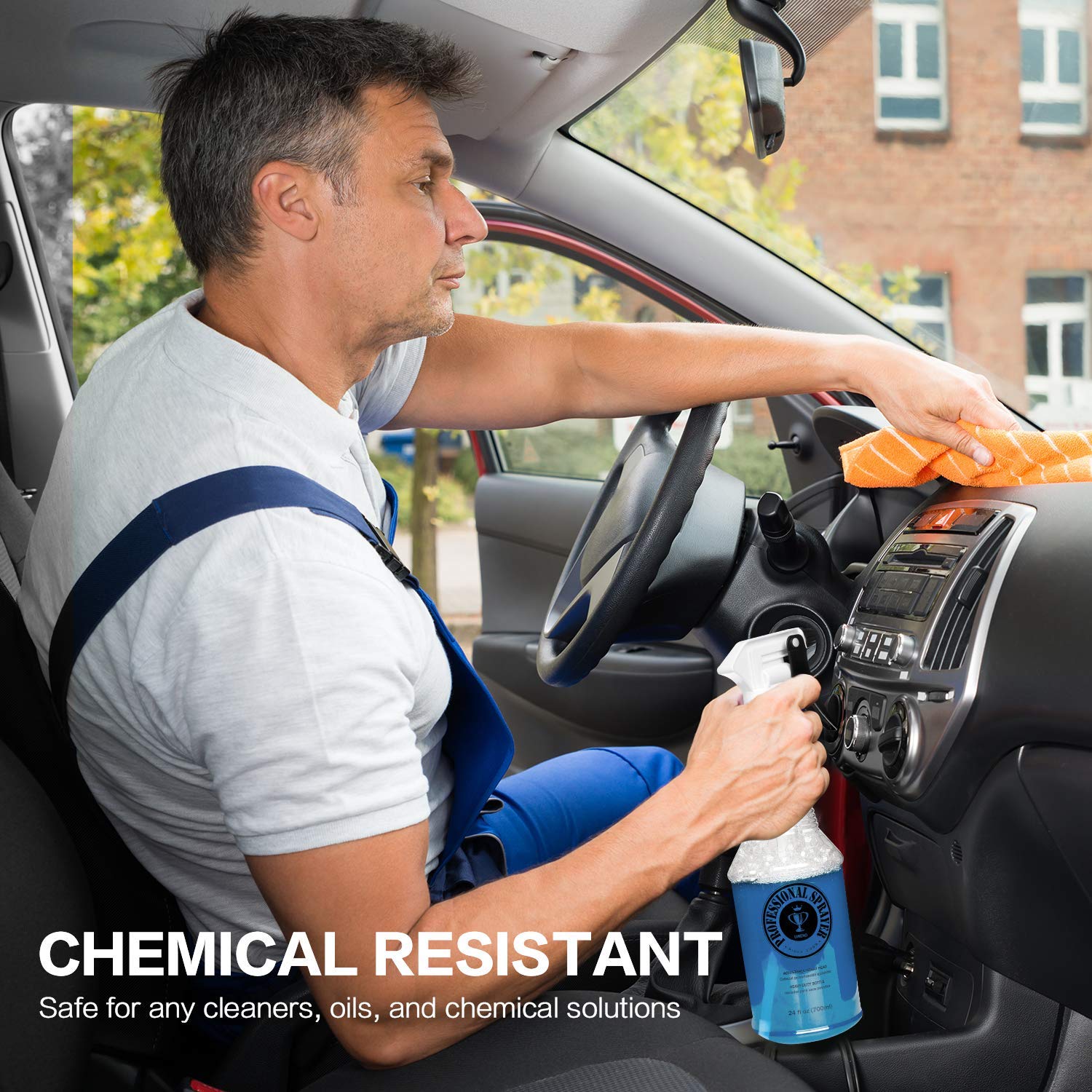 - Chemical Resistant - The heavy duty 24oz bottle is chemically resistant to hold up against harsh chemicals and solvents such as waxes, carpet cleaners, dressings, window cleaners, degreaser, etc…