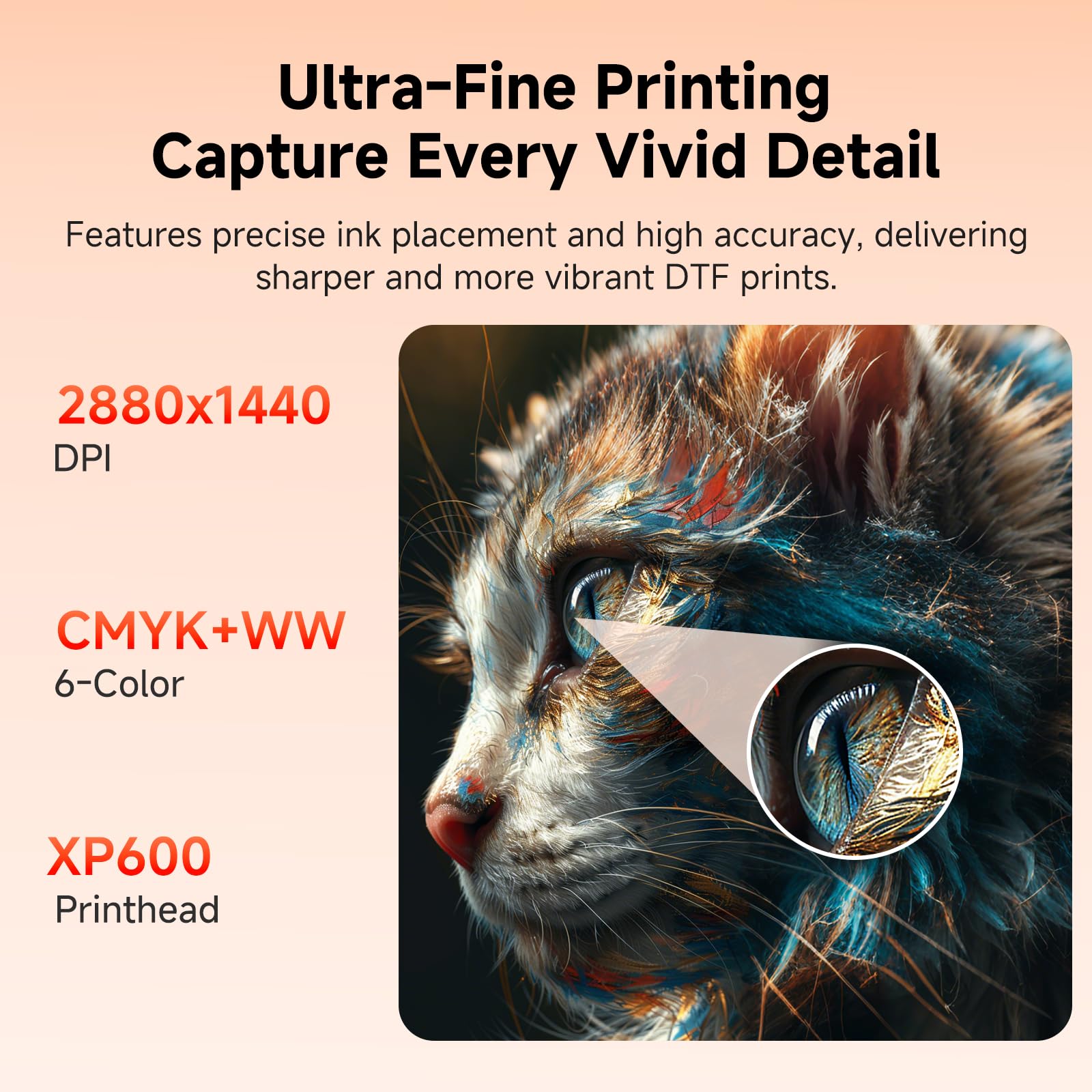 - 【Built-in Film Cutter】The film-cutter allows for accurate trimming of DTF film, saving you valuable time and boosting your workflow efficiency. Cut down on manual labor and improve productivity in your business.