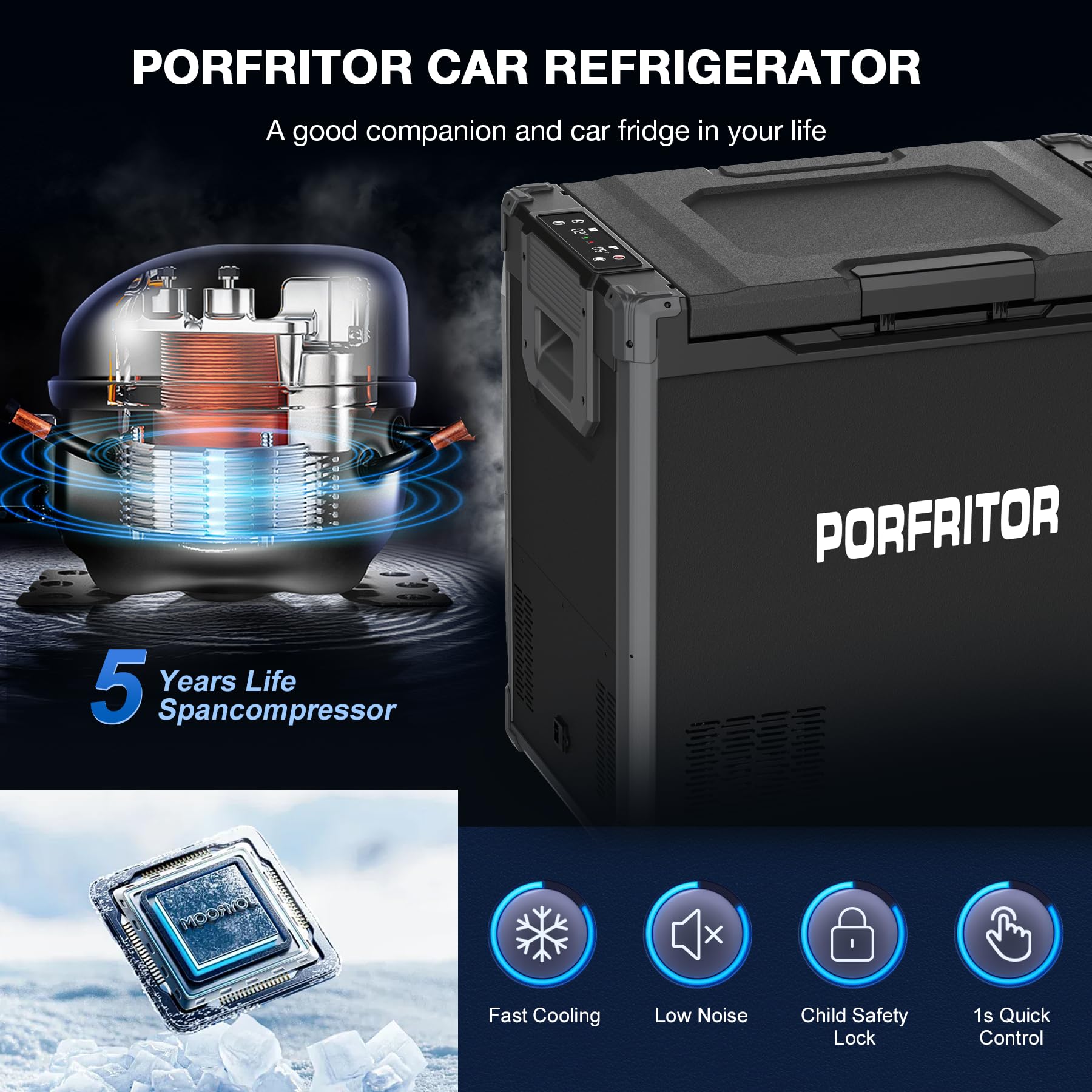 - 【After-Sales Service】PORFRITOR 12v refrigerator and accessories come with a one-year warranty, allowing you to buy without worries. If you have any questions or need help, please feel free to contact us through Amazon. Our professional after-sales team will respond within 24 hours and work hard to solve any problems to ensure your satisfaction. (Package Includes: 1* Car Refrigerator, 1* DC Cable, 1* AC Cable, 1* User Manual.)