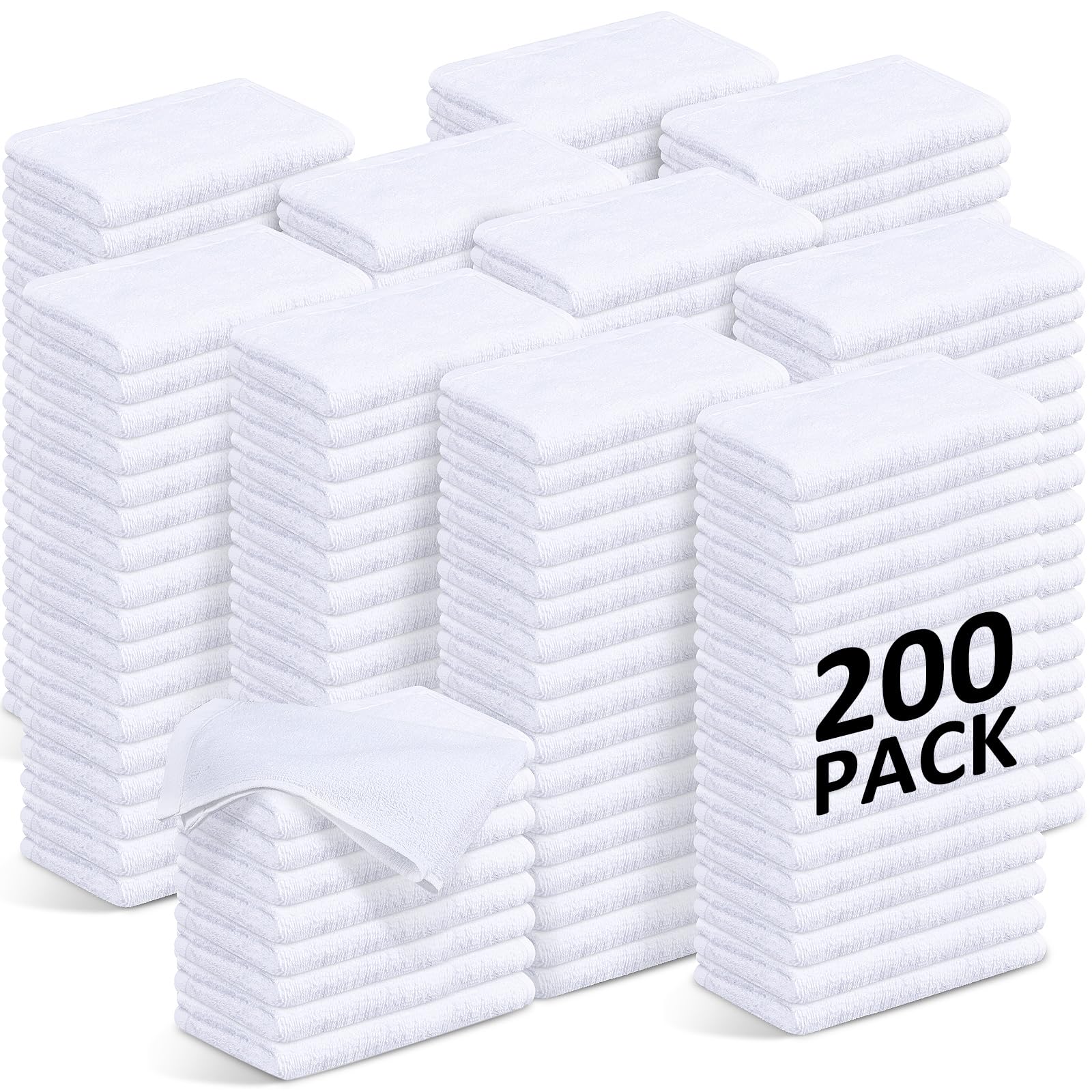 Preboun 200 Pack Cotton Terry Towel Bulk 14 x 18'' White Cleaning Cloths for Cleaning Bar Rags Bulk High Absorbent Multipurpose Shop Towels or Kitchen, Automotive, Garage,Home