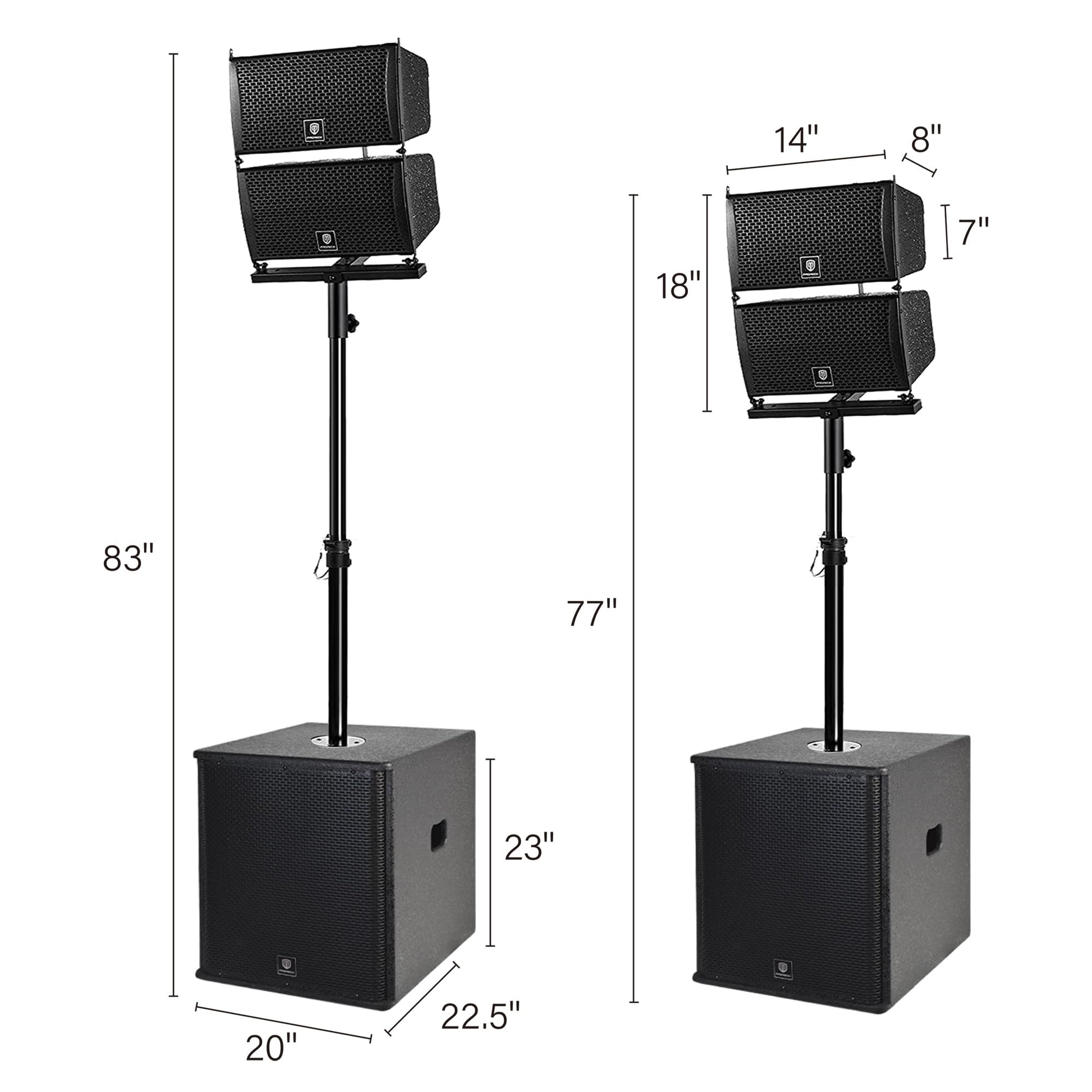- Wooden Box For Less Resonance: The subwoofer box is made of wood, which reduces the resonance generated by sound compared to plastic speaker, resulting in better sound quality. In addition, it also looks thicker and more aesthetically pleasing. Note: Items are shipped with 3 packages separately. Item weight: 48.5lbs+49lbs+60lbs; Item size: 20x22x23 inch *2 ; 36x11x20 inch.