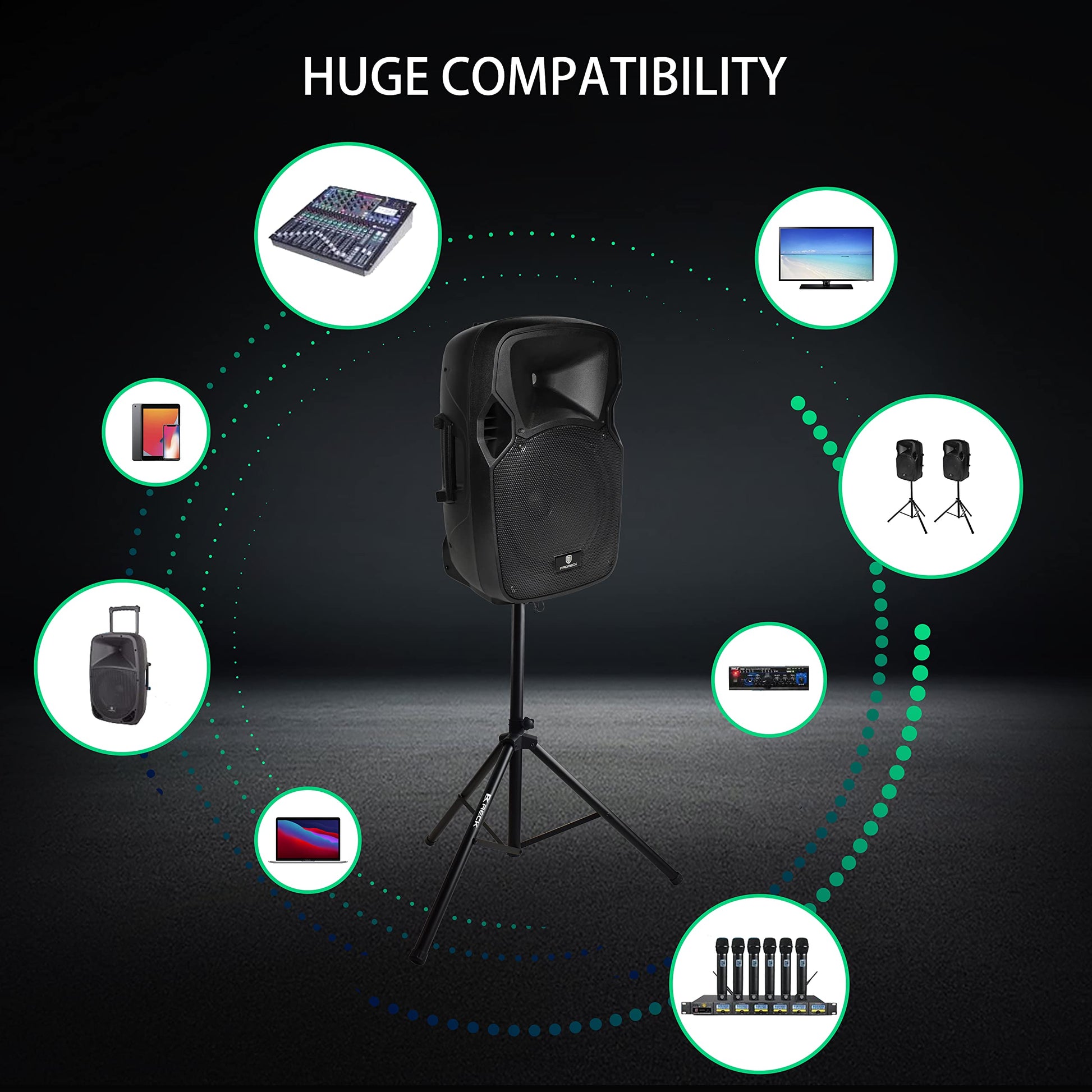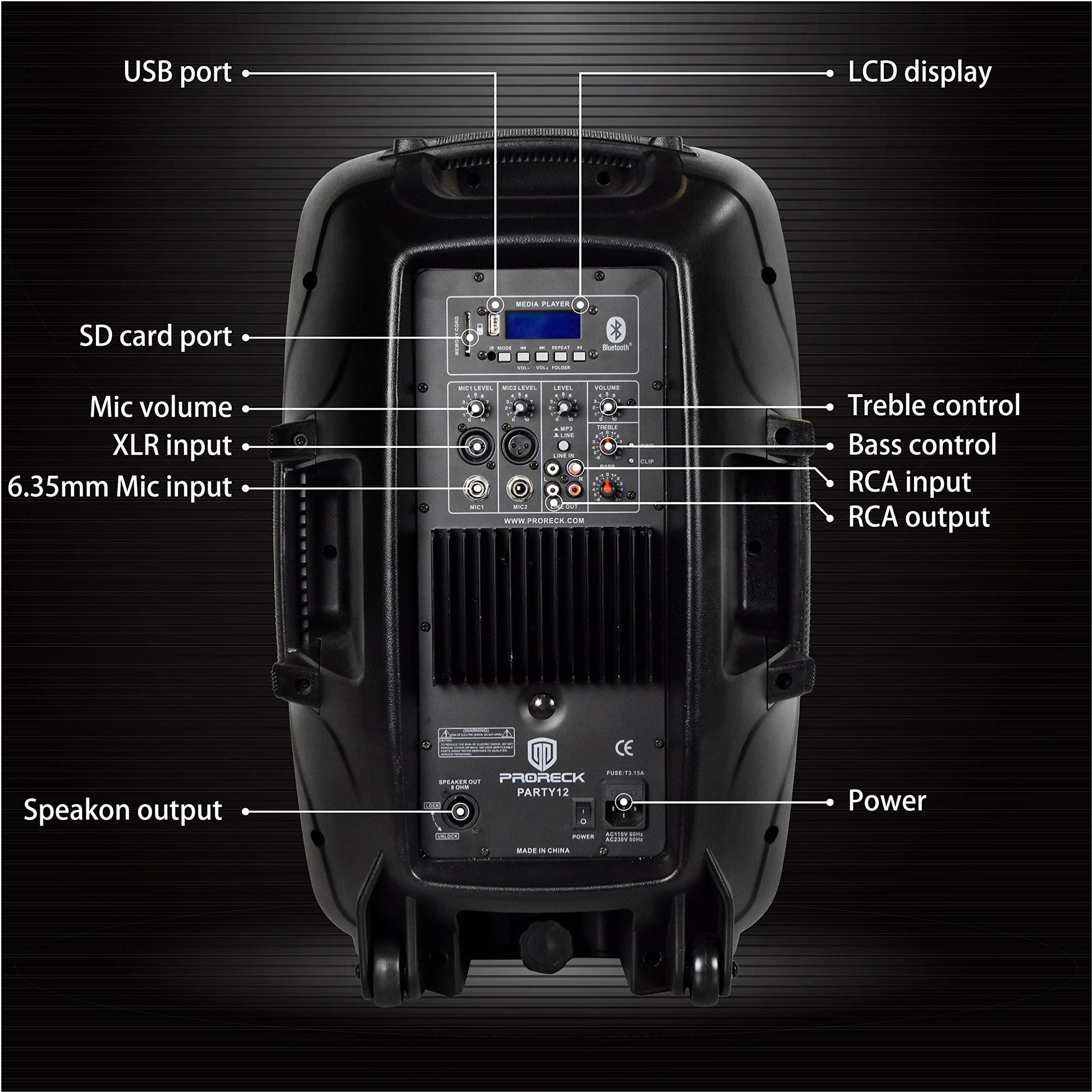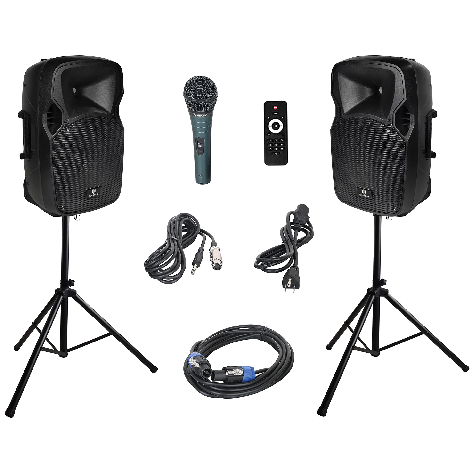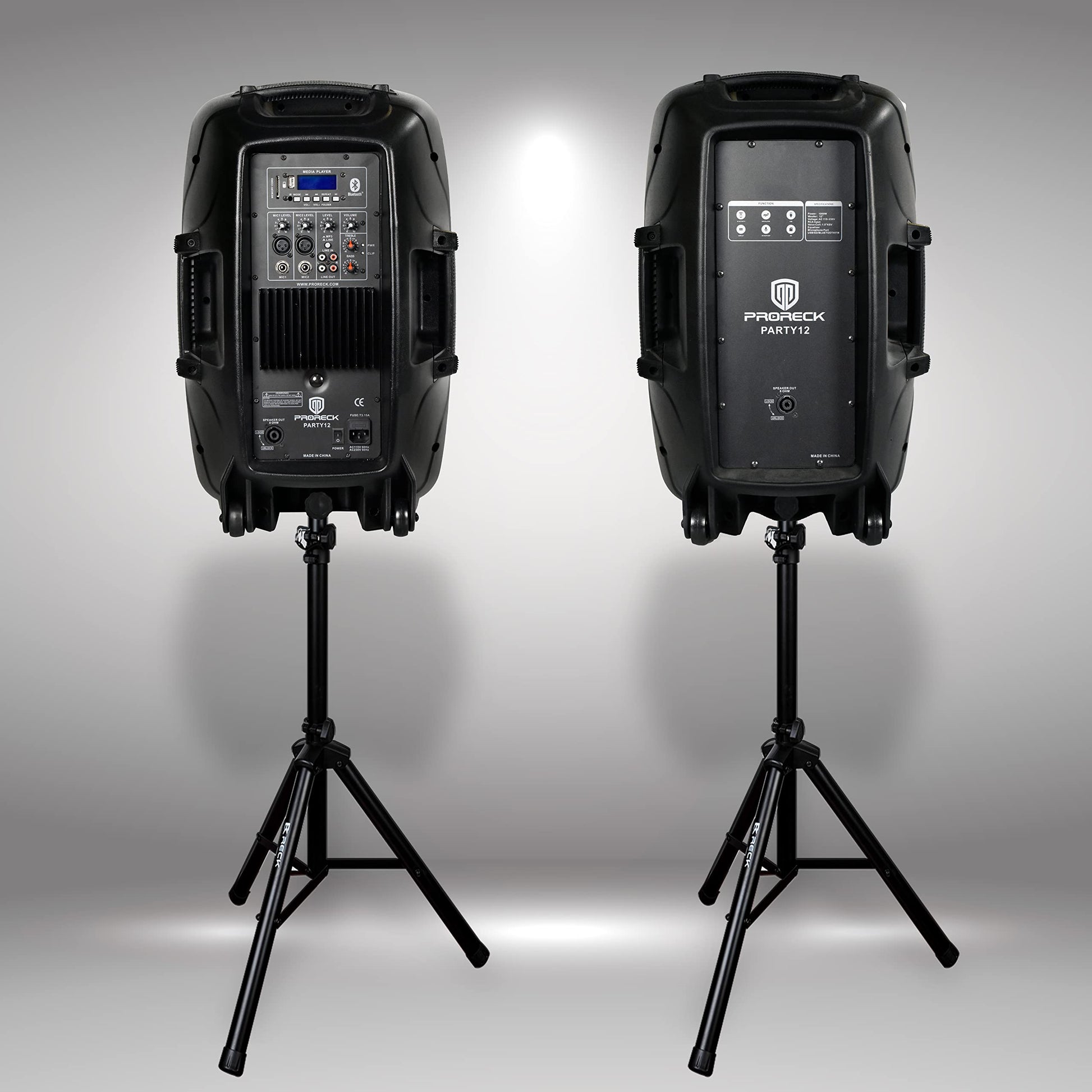 PRORECK Party 12 12-Inch 1000 Watts 2-Way Powered PA Speaker System Combo Set with Bluetooth/USB Drive Read Function/SD Card Reader/FM Radio/Remote Control/Speaker Stand