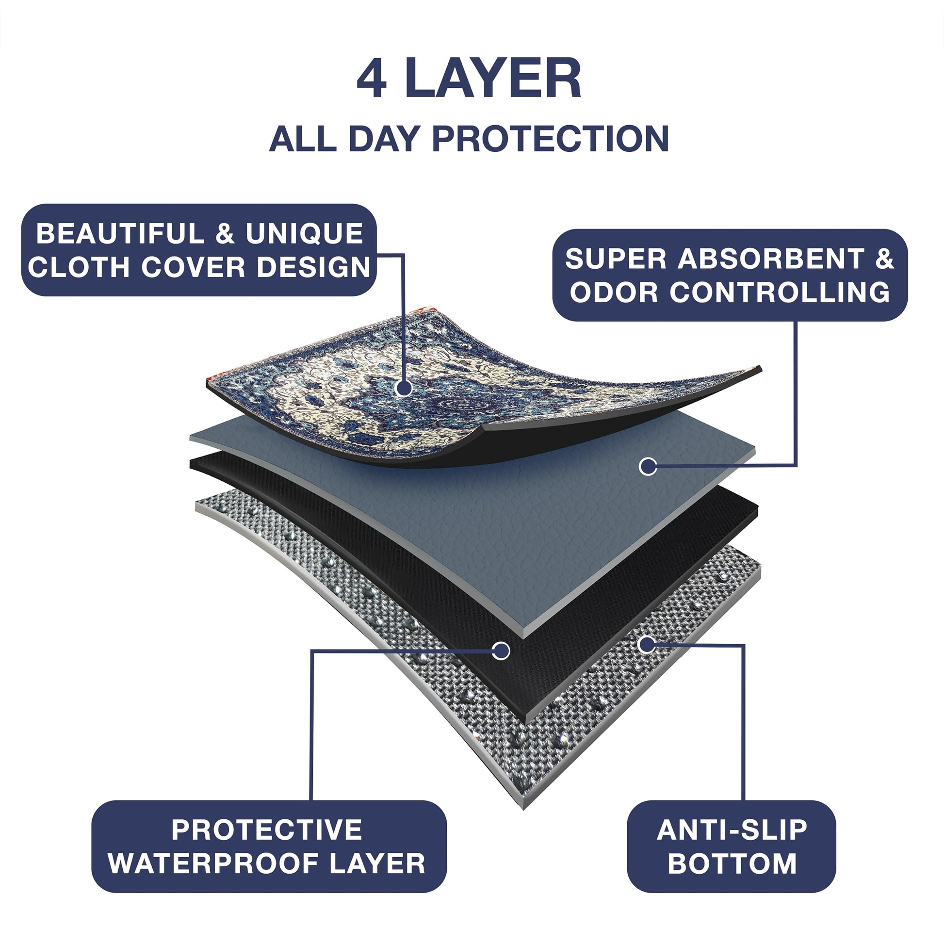 - Ultra-Absorbent and Leak-Proof Washable Dog Pee Pads - Our multi-layered reusable puppy pads feature a waterproof TPU coating that effectively absorbs and retains liquid, preventing leaks and odors. Designed to withstand repeated washing and urine soaking, these durable whelping pads are perfect for housebreaking, incontinence, or post-surgery care. The non-slip backing keeps the pad securely in place, making it ideal for use on hardwood floors or in crates. Stylish and functional, they blend seamlessly with your home decor, eliminating the need to hide unsightly disposable pads.
