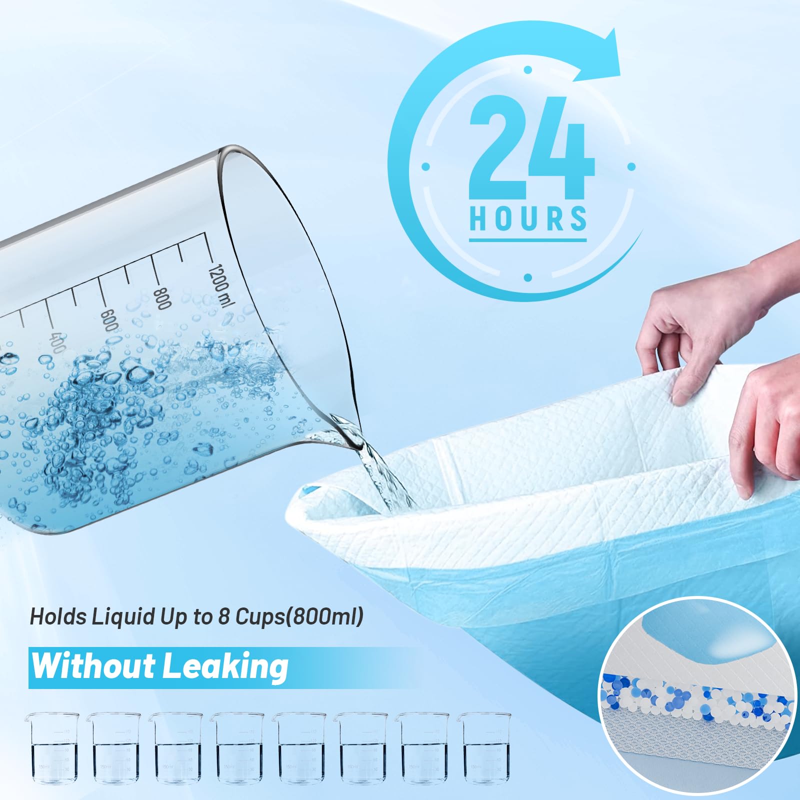 - Hold More Liquid Up To 8 Cups: Increased to 12g super absorbent polymer and fluff pulp hold more liquid up to 8 cups(800ml), with more polymer and fluff pulp than others, these dog pads extra large turn liquid into gel faster, keep your floor dry, and more money saving