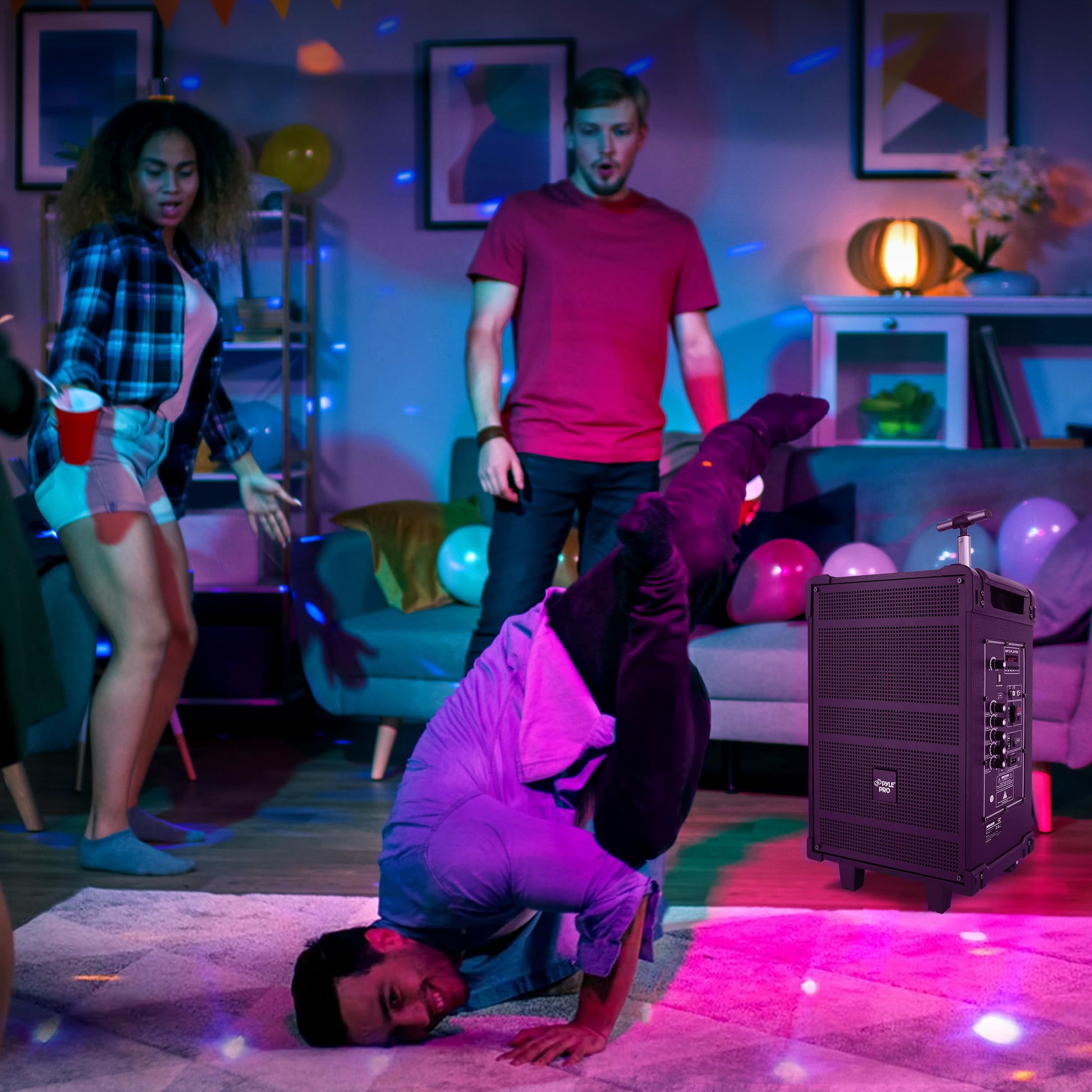 Details: Features: - Compact, Portable & Powerful PA Speaker System - Karaoke Microphone Talk-Over Mode - Bluetooth Wireless Audio Streaming - Built-in Rechargeable Battery - FM Radio with Digital LED Display - USB Flash & Micro SD Memory Card Readers - MP3 Digital Audio File Compatibility - Audio Recording Function - 1/4’’ Microphone Input - Aux (3.5mm) Input Jack - Connect & Stream Audio From External Devices - Full Range Stereo Sound Reproduction - Impressive Bass Response - Echo, Bass, Volume Adjustment - Convenient Carry Handle & Rolling Wheels - *Optionally Powered via External Device, 12V Connectors - Rugged & Heavy-Duty Design Bluetooth Connectivity: - Built-in Bluetooth for Wireless Streaming - Works with All of Your Favorite Devices - (Smartphone, Tablet, Laptop, Computer, etc.) - Bluetooth Wireless Range: 33'+ Ft. - Bluetooth Version: 5.0 What’s in the Box: - Portable PA Speaker - (2) Wireless Handheld Microphone - Power Cable - Remote Control Technical Specs: - MAX Power Output: 600 Watt - Sound System: 10’’ Mid-Range Speaker + 3’’ Tweeter - Impedance: 4 Ohm - S/N Ratio: 60dB - Built-in Rechargeable Battery: 12V 4.5AH - Power Supply: 120/240V - Mic Nominal Current Drain: <100mAh - Battery Operated Mics, Requires (2) x ‘AA’ Batteries (-Each) - Battery Type: 12V/4.5AH lead-acid battery - Battery Life: Up to 2.5+ Hours - Product Dimensions (L x W x H): 16.34’’ x 11.22’’ x 22.44’’ -inches
