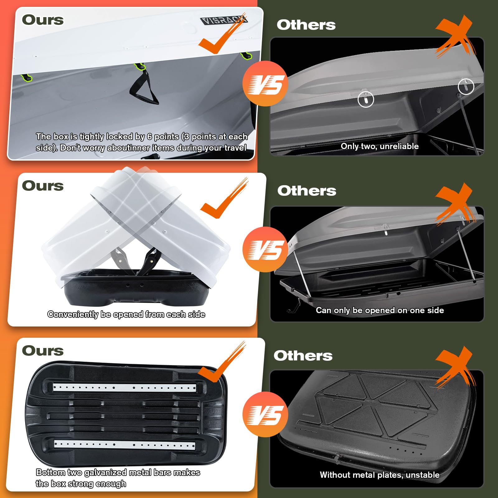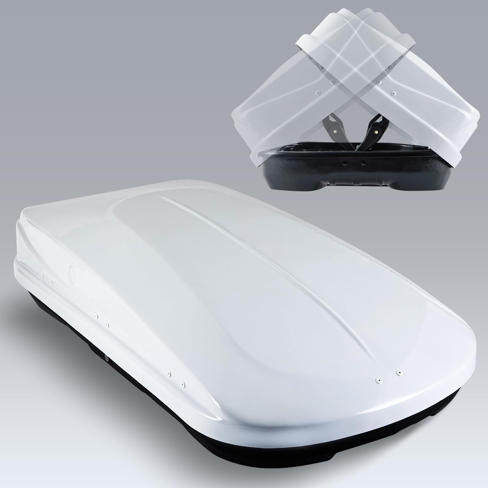 - This car roof box is manufactured from sturdy ABS and PMMA material for long-lasting use and shiny, able to protect your valuables from exposure to the elements and can load 130 lbs capacity, suitable for round, square and most aerodynamic bars.