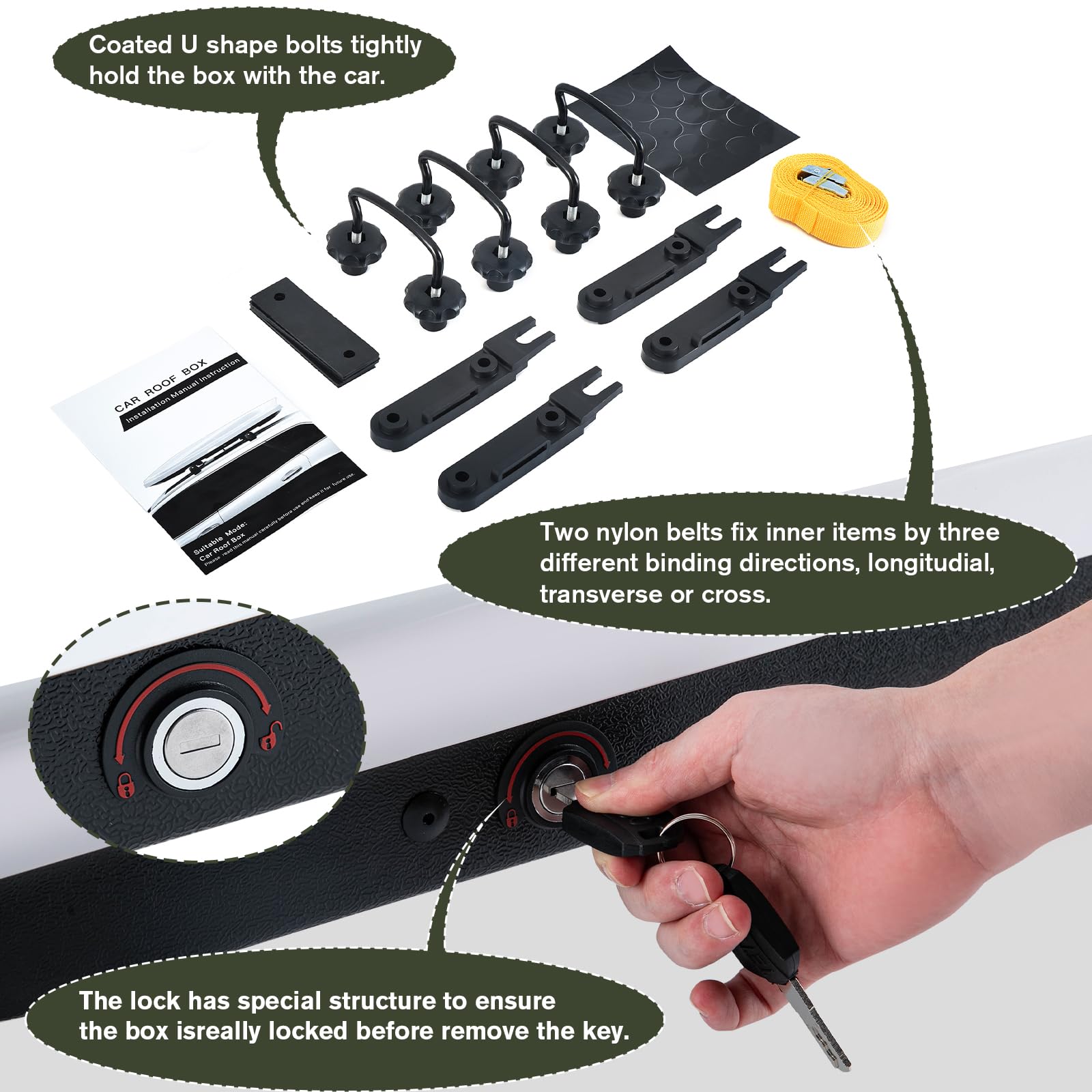 QUAWIP Rooftop Cargo Box,Rooftop Cargo Carrier Hard Shell with Security Keys, Waterproof Heavy Duty Roof Cargo Box, 56 (L) x 30 (W) x 15(H) Inches 13 Cubic Feet (Tool-Free Install) (T22)