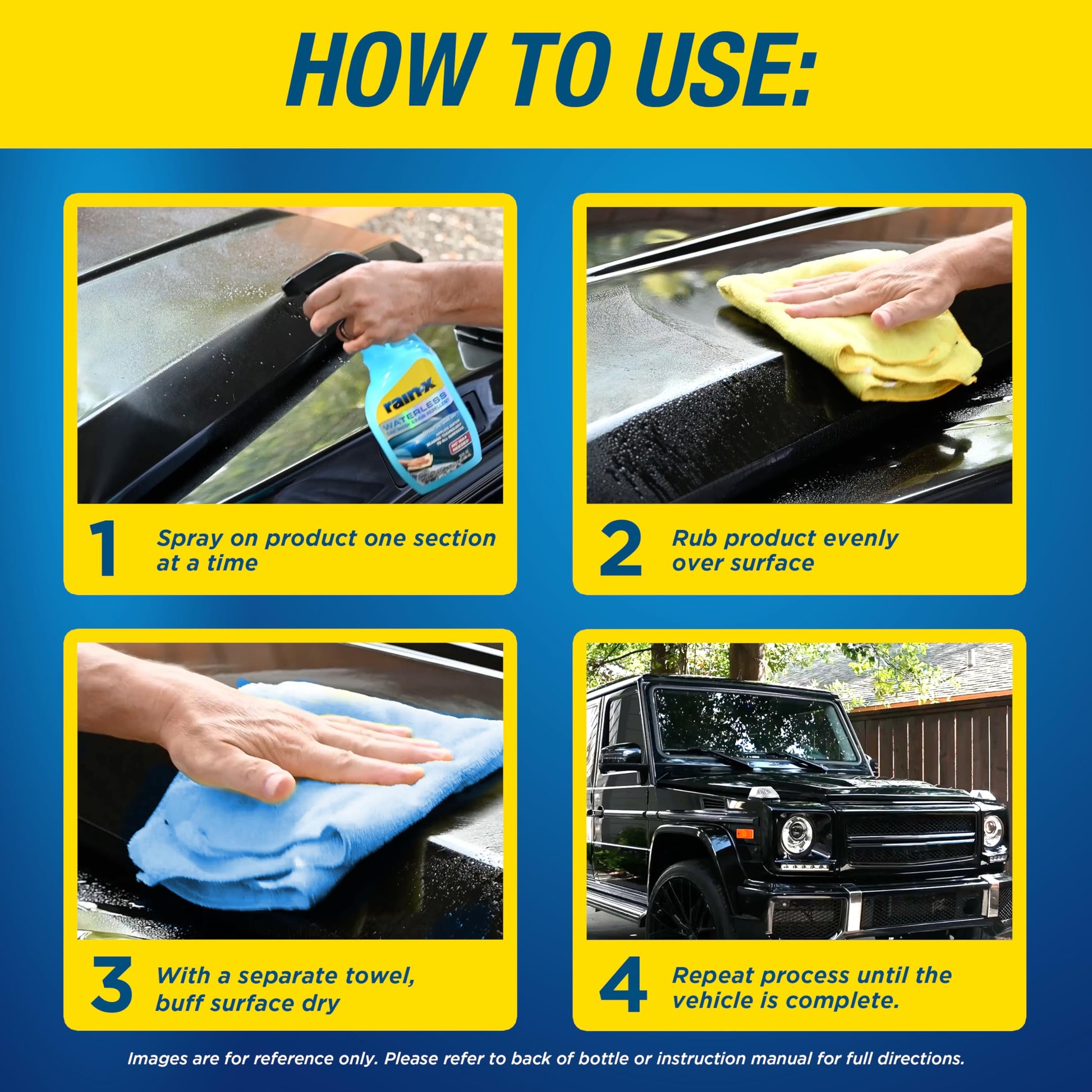 - Provides an exterior protectant - applies Rain‑X water repelling technology making it so you don't need a wax spray for your car. Simply apply and wipe off for additional protection a traditional waterless car wash kit doesn't provide