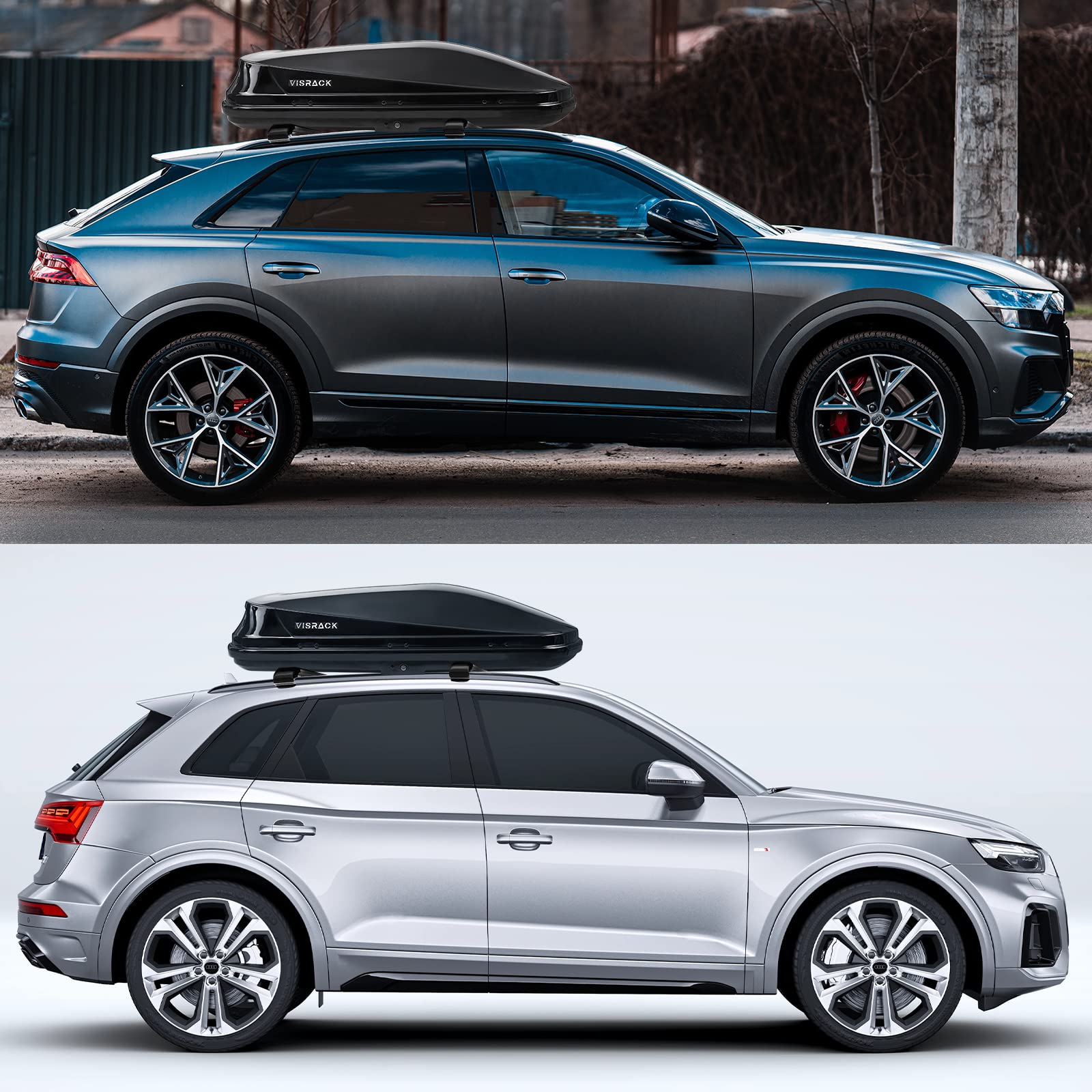 - 【High-Quality Material】The roof box is manufactured from sturdy ABS and PMMA material for long-lasting use, able to protect your valuables from exposure to the elements and can load 130 lbs capacity, suitable for round, square, factory and most aerodynamic bars.