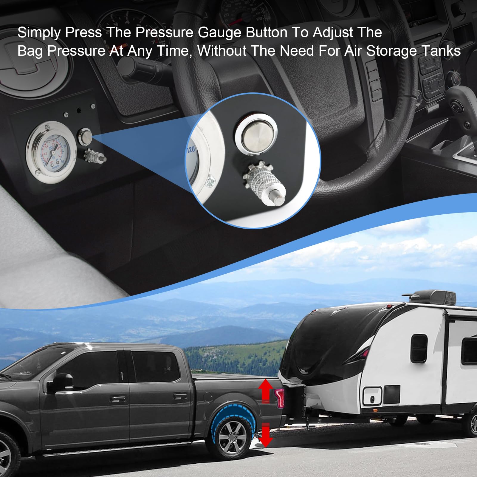 - Feature: The Air Compressor Distributes air pressure to the air springs, creating extra ground clearance when towing and hauling, so you can have a safe and smooth ride for a better driving experience