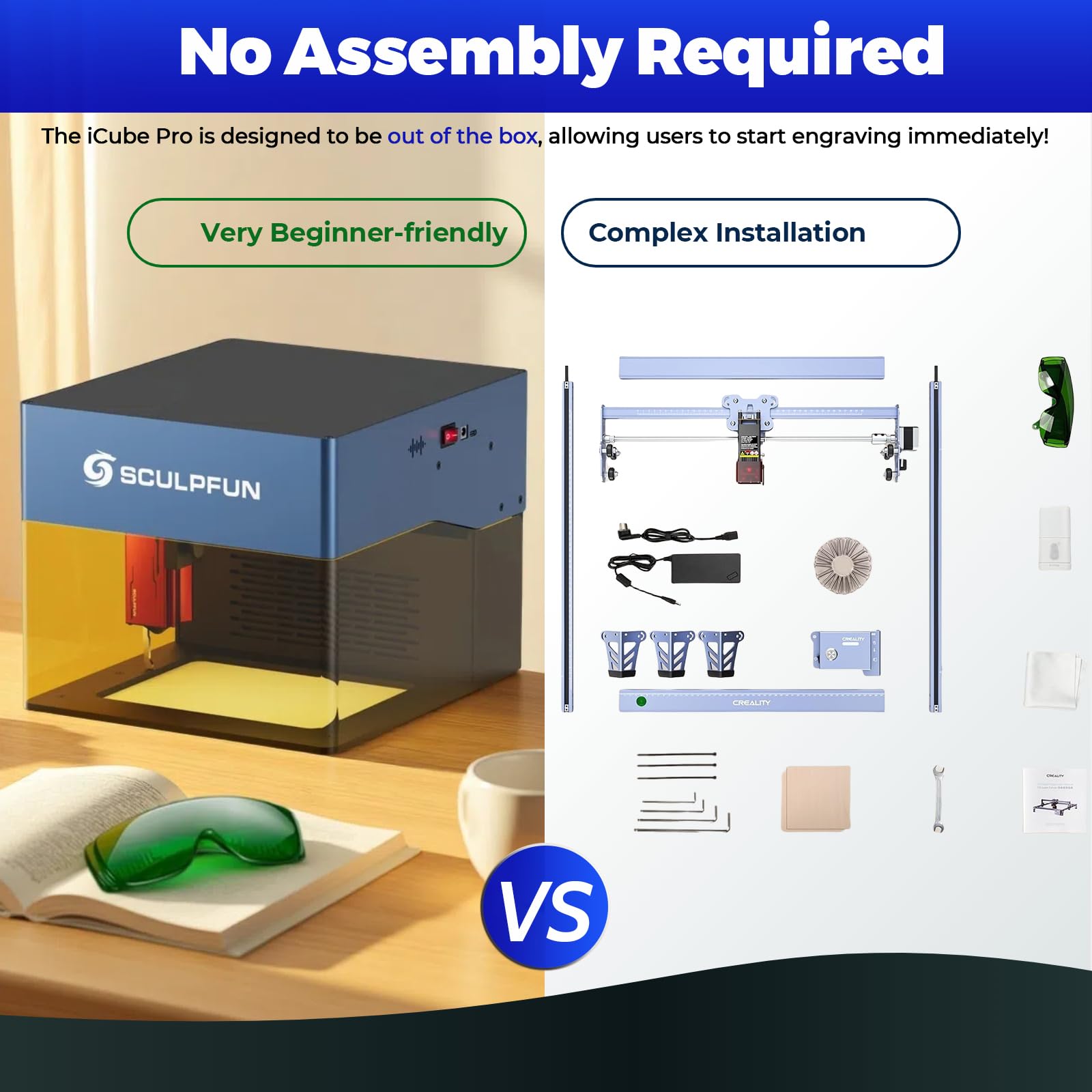 SCULPFUN iCube Pro Laser Engraver, 5000mW Desktop Laser Cutter with Smoke Filtration System, Laser Class 4, 125×125mm Engraving Area, No Assembly Required, 0.01mm Carving Precision