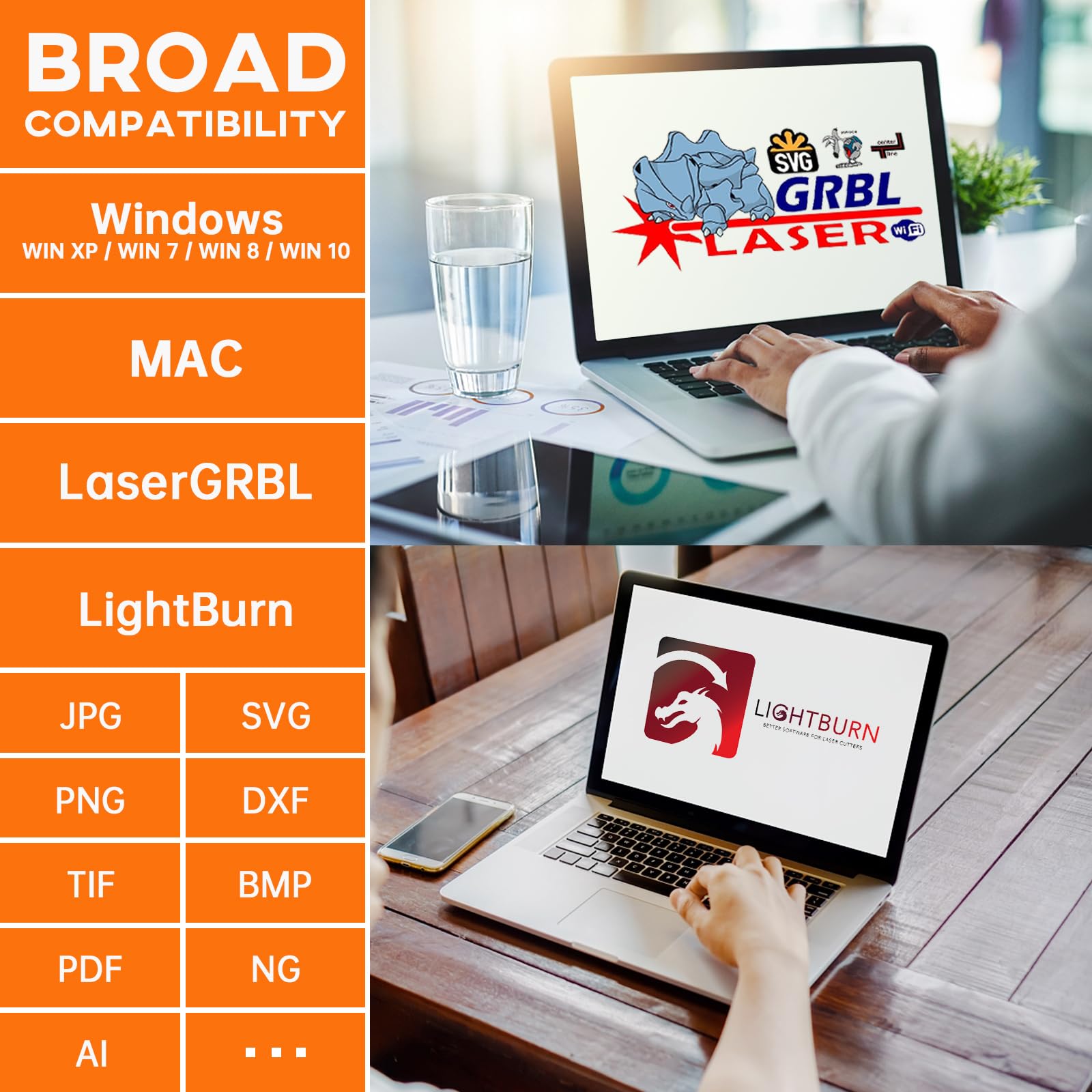 - Wide Compatibility: The SCULPFUN S9 Pro is compatible with various mature engraving software, such as LaserGRBL, LightBurn, Benbox, GrblController, LiteFire. It supports PWM mode engraving, Windows system, and MAC system (LightBurn). The engraving file format like JPG, PNG, DXF, SVG, AI, G-code, NC, BMP, etc. are supported.