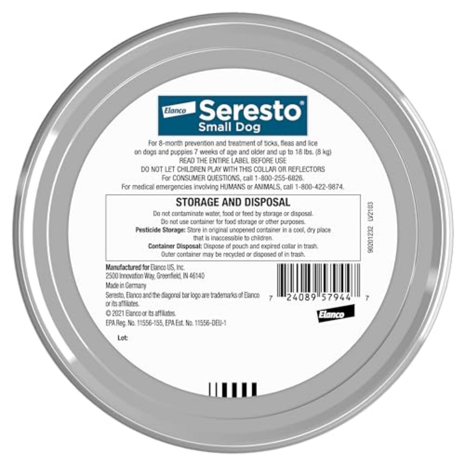 Seresto Small Dog Vet-Recommended Flea & Tick Treatment & Prevention Collar for Dogs Under 18 lbs. | 8 Months Protection