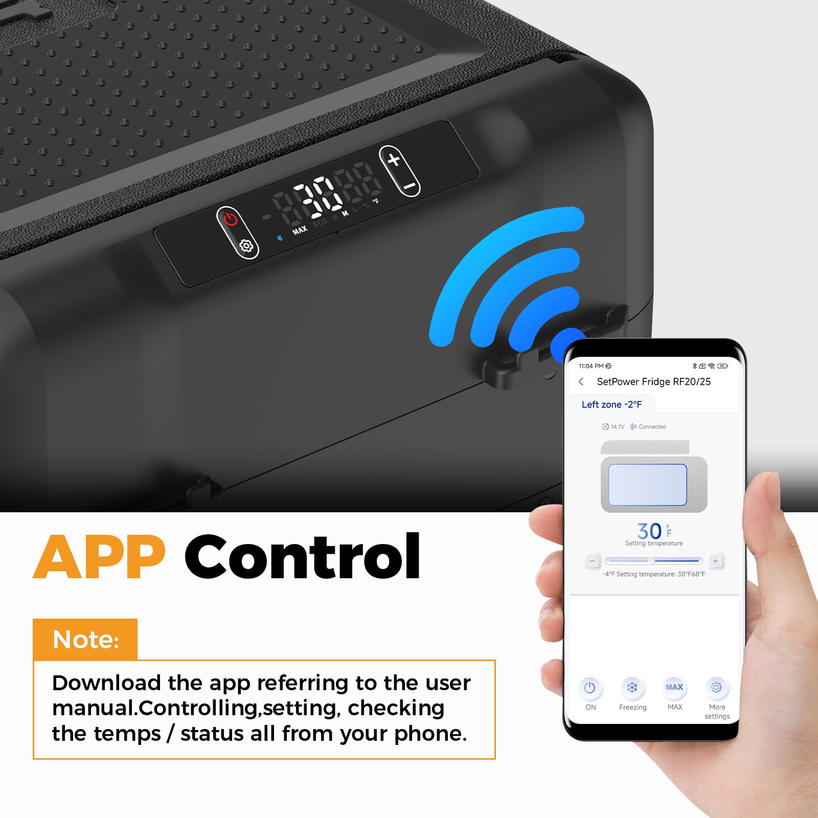 - More Convenient Operation: You can switch between modes of the 12 volt refrigerator with the control panel or remotely via your phone app. The Setpower RF20 12V cooler that doubles as a protable fridge or freezer. (Temp. Range from 68 ℉ to -4 ℉)
