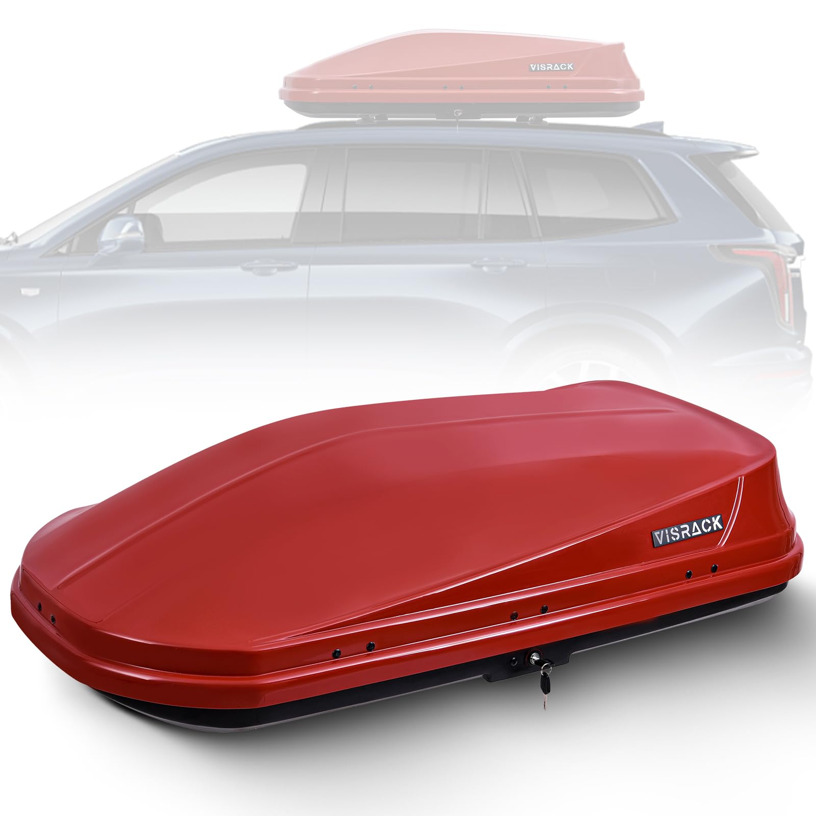 SHINEUX Rooftop Cargo Carrier Hard Shell with Security Keys, Cargo Box, 14 Cubic Feet Roof Rack Cargo Carrier, Rainproof Cargo Carrier for Top of Vehicle(Tool-Free Install), RED