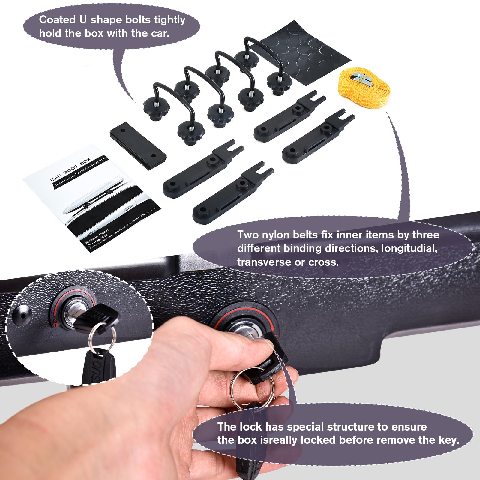 - PREMIUM QUALITY MATERIALS: Constructed from strong ABS and PC materials, this roof box is durable and glossy to protect your valuables from the elements and is suitable for round, square and most aerodynamic bars