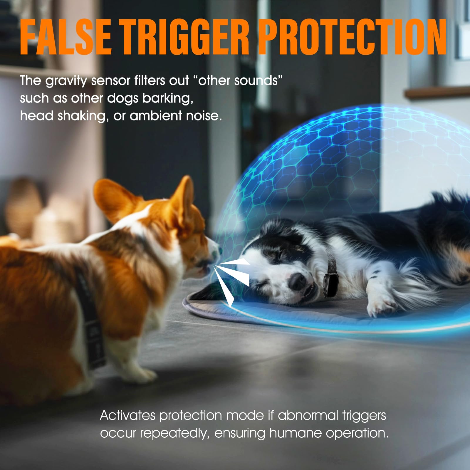 - Dual Sensors for Accurate Bark Detection: This latest bark collar features advanced AI sound recognition to accurately identify your dog’s barking, whining, and howling. The bark collar for large dog with a built-in gravity sensor, it prevents false corrections caused by head shaking or sudden movements, while filtering out environmental noise and other dogs’ sounds. Corrections activate only when truly needed!