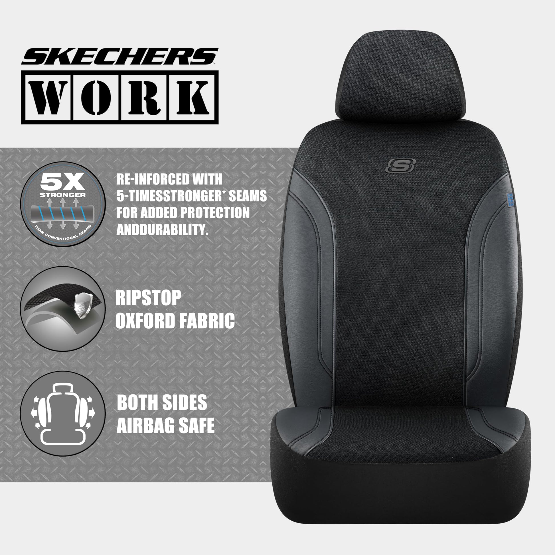 - SKECHERS WORK - Skechers Work Seat Covershave reinforced webbing built into them to be five times stronger than conventional materials. This design is to ensure that the seat cover maintains its shape and structure under various conditions of use.
