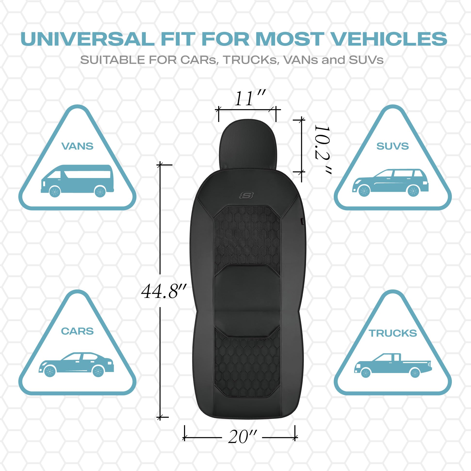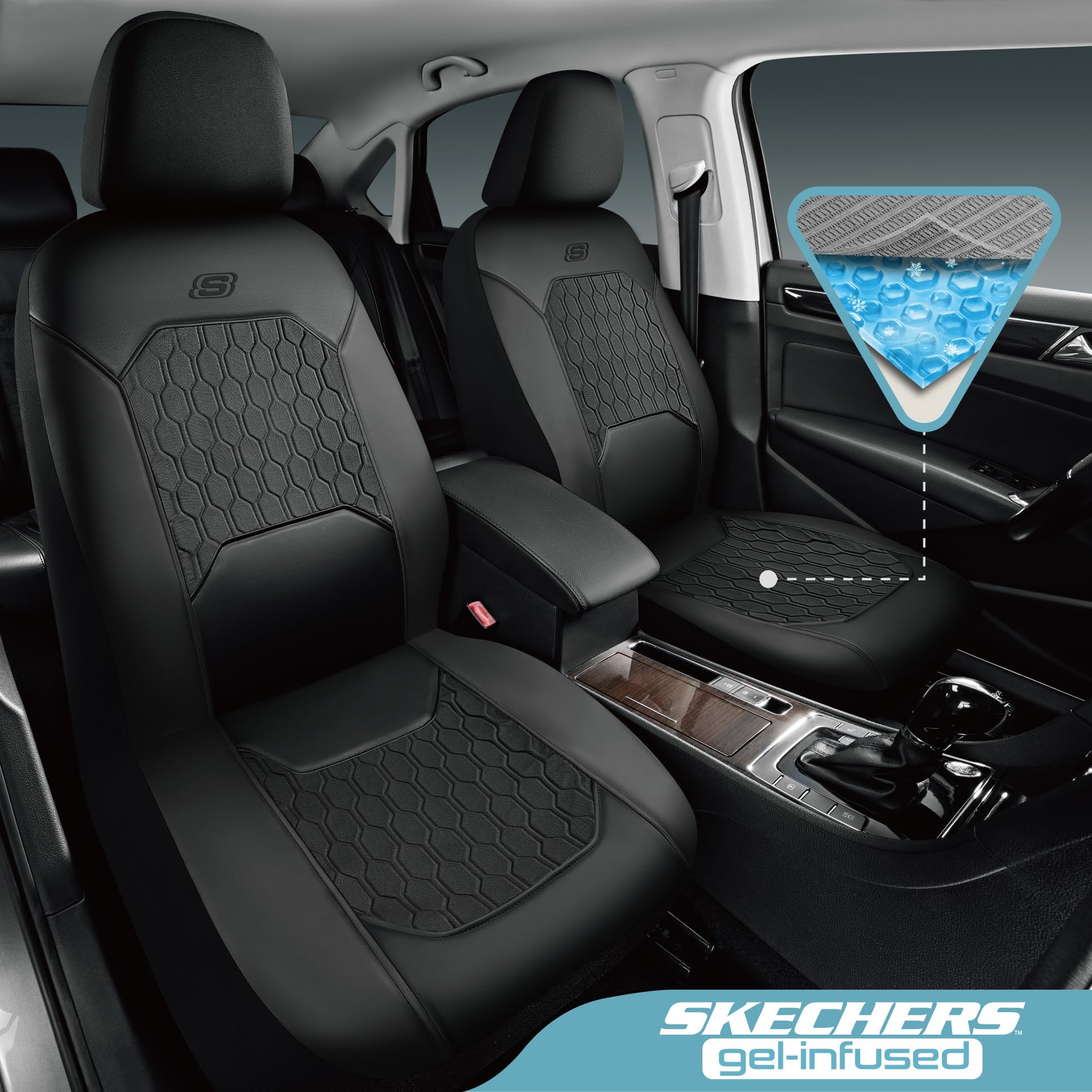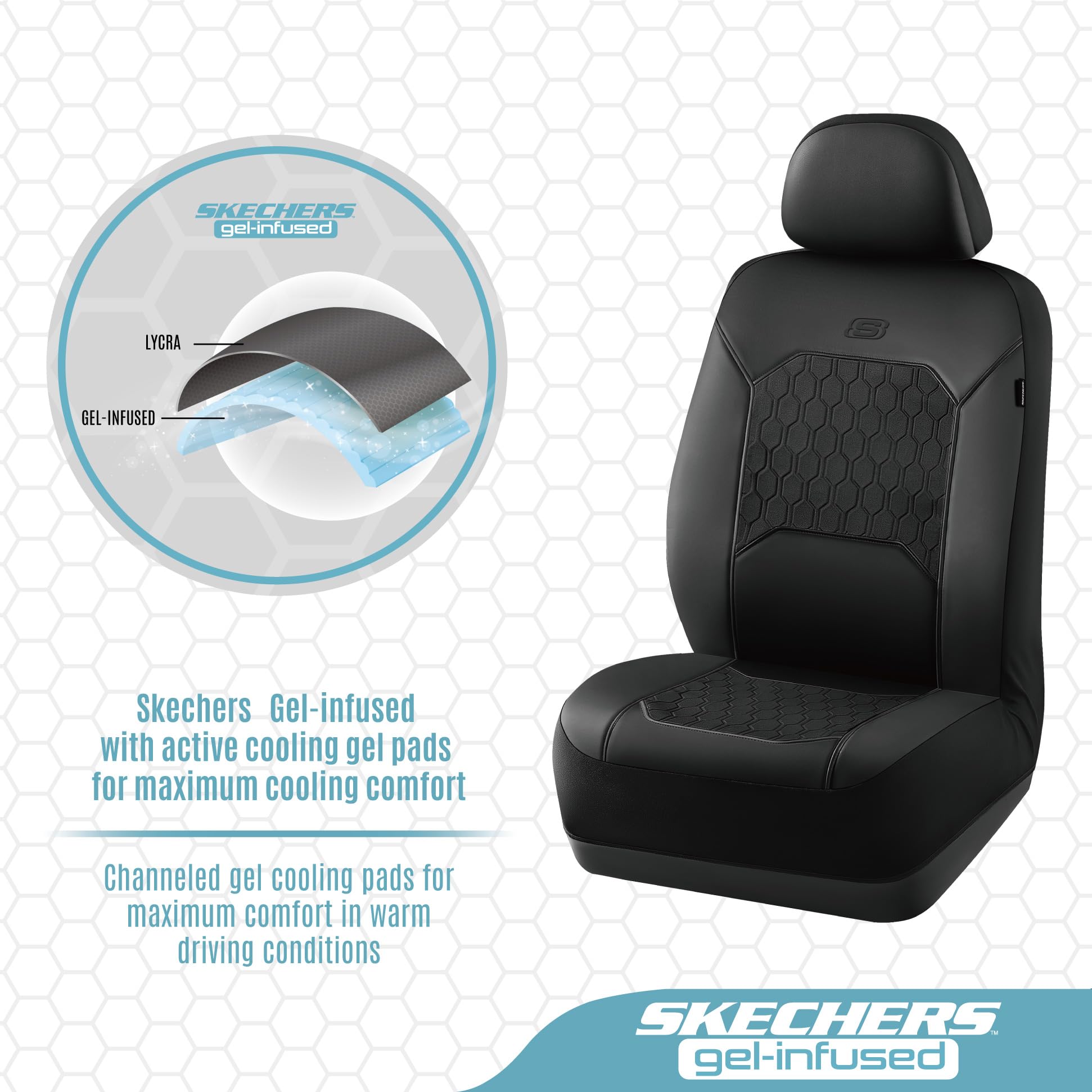 Skechers Gel Seat Covers,Cooling Car Seat Covers,Leather Front Seat Covers,Airbag Compatible,Automotive Comfort Universal Fit for SUVs,Vans,Sedans,Cars,Trucks,Black