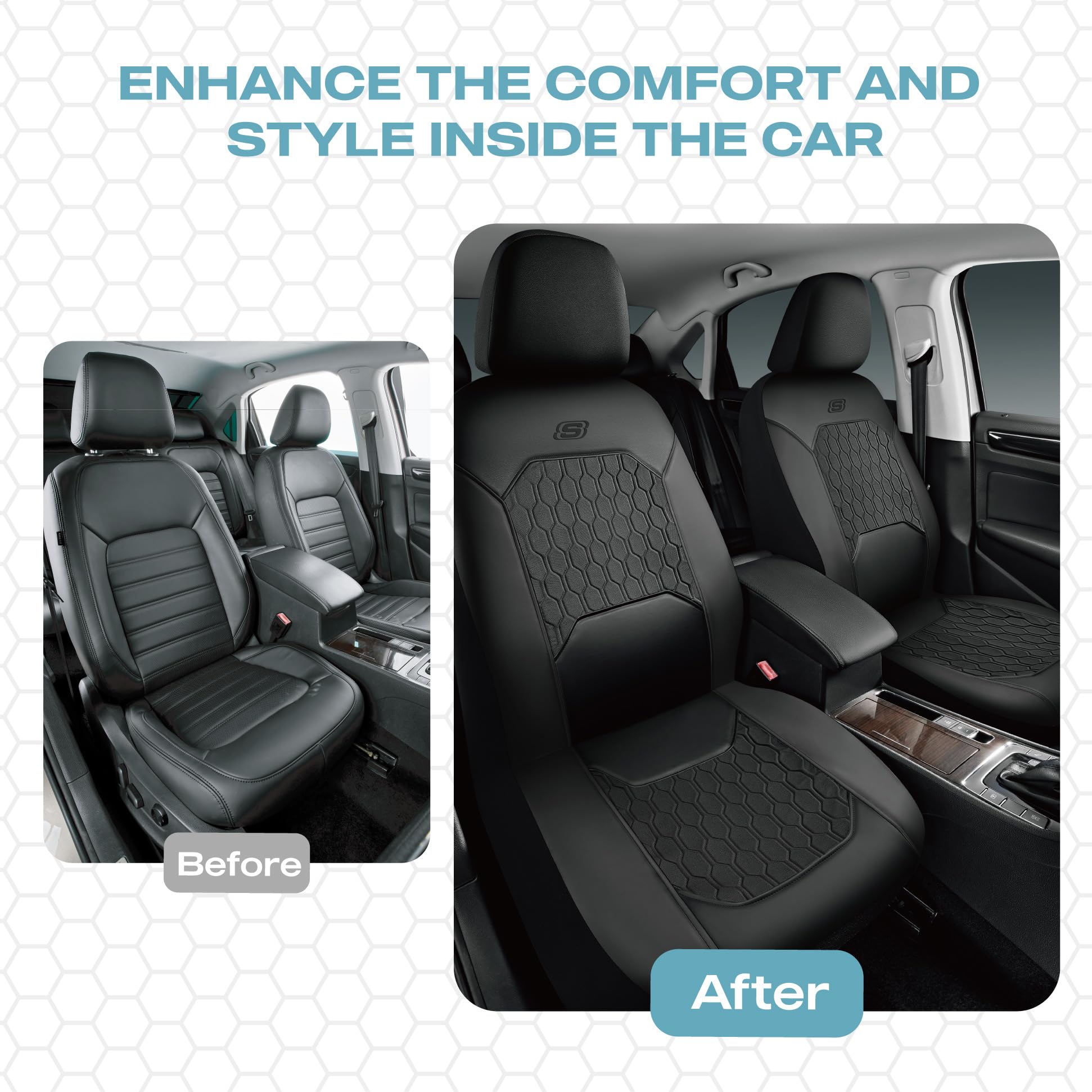- PREMIUM LEATHER & GEL TECHNOLOGY-Crafted from high-quality leather and featuring GEL technology, these seat contours to your body, providing maximum comfort and support. The soft leather adds a touch of luxury to your car’s interior.