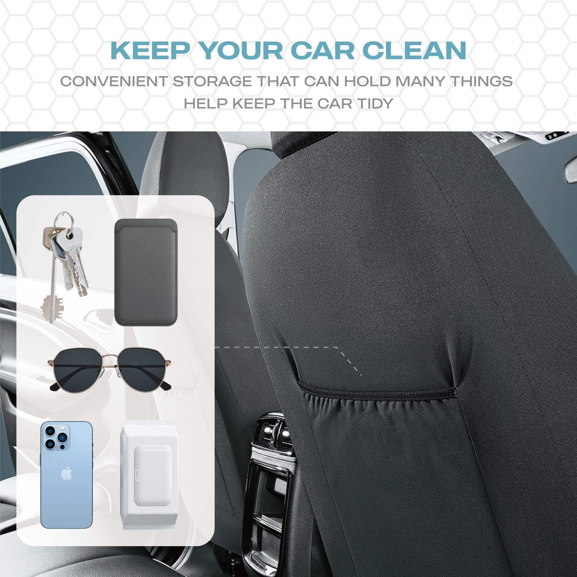 - UNIVERSAL FIT & EASY INSTALLATION-Designed to fit most SUVs, vans, sedans, cars, and trucks, these seat covers are easy to install with no tools required. The universal fit ensures a snug and secure installation, providing full coverage and protection for your seats.