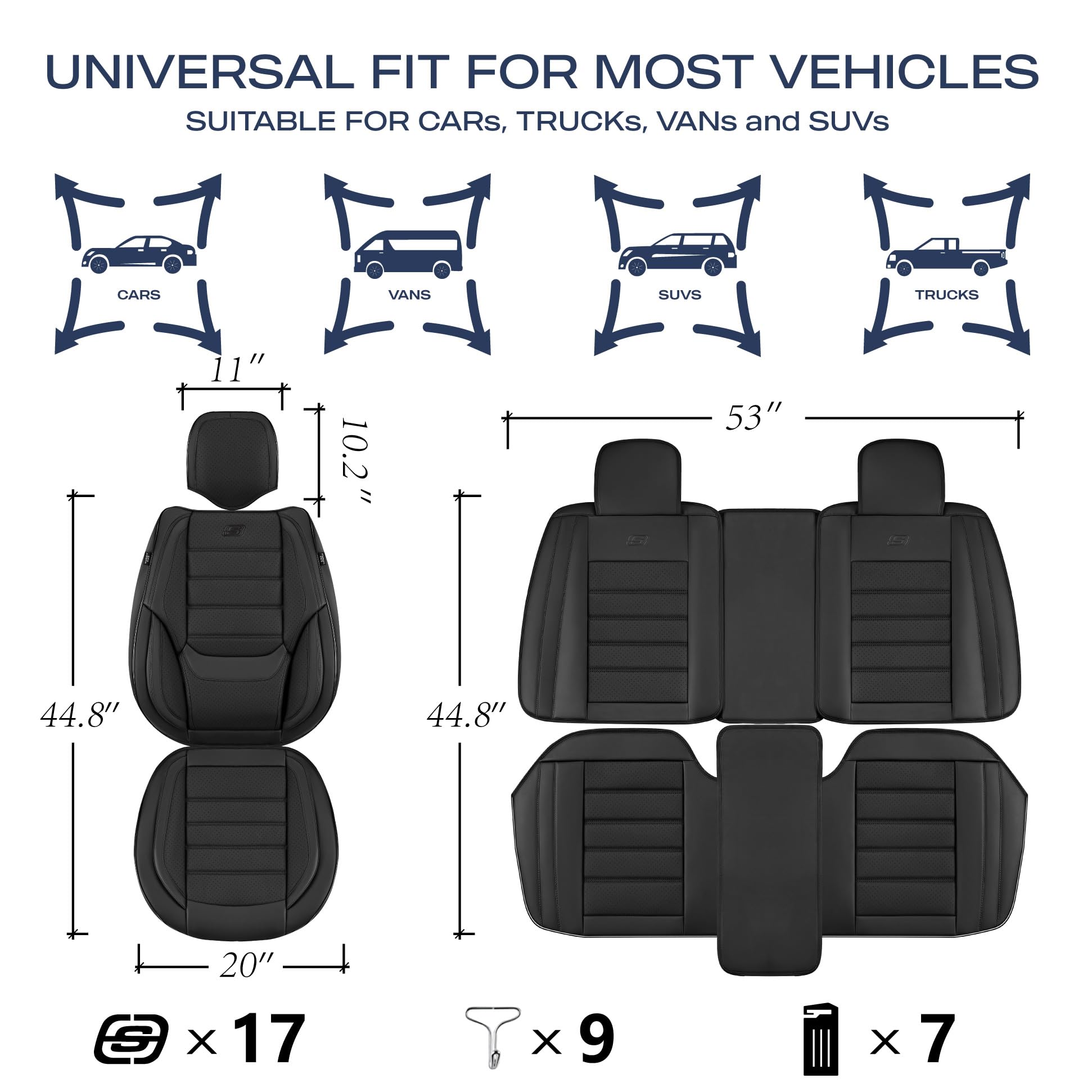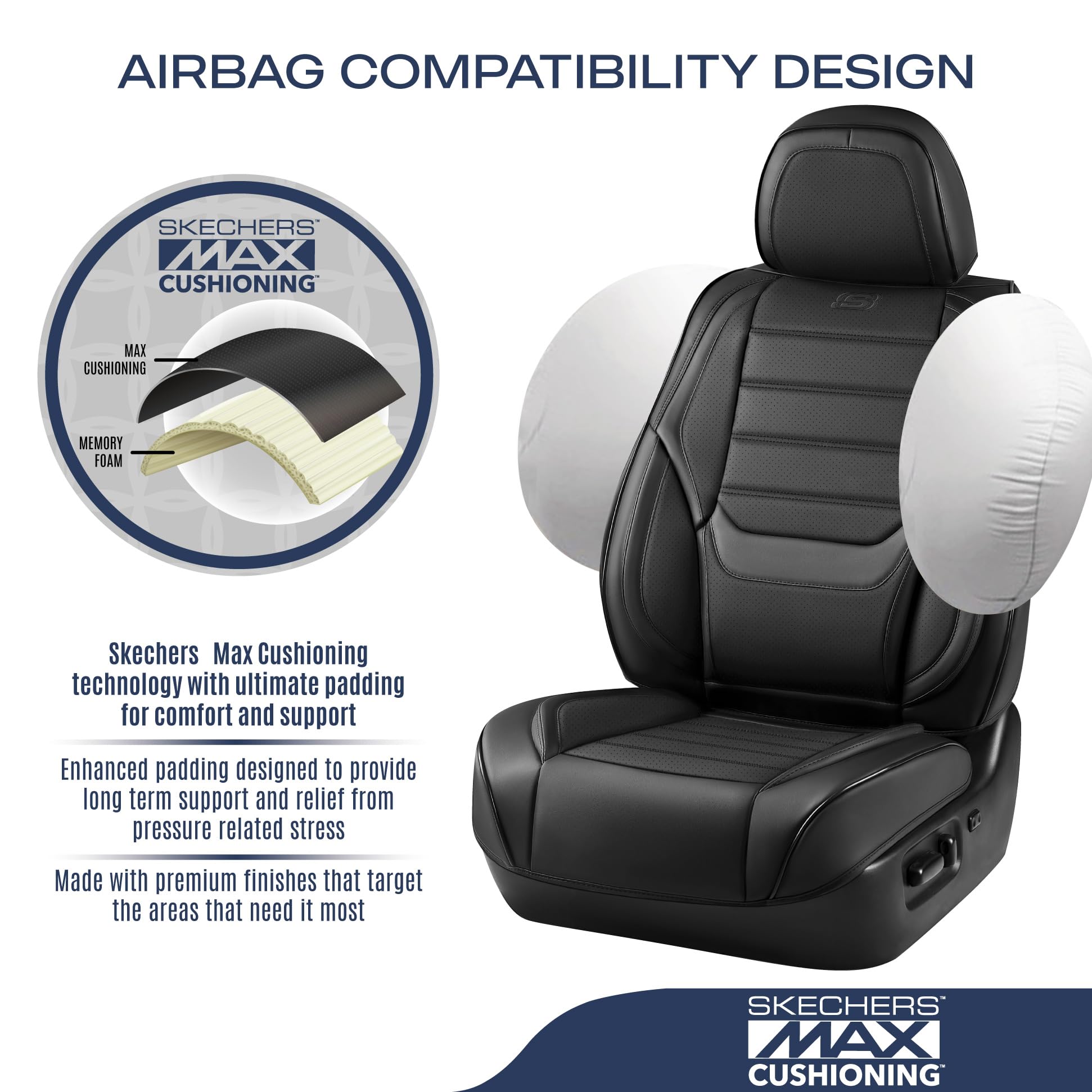 Skechers MAX Cushioning Seat Covers,Memory Foam Leather Car Seat Covers,Waterproof Car Seat Protector Full Sets,Car Seat Cushion Airbag Automotive Universal Fit for Most Cars,Vans,Trucks,SUV,Black