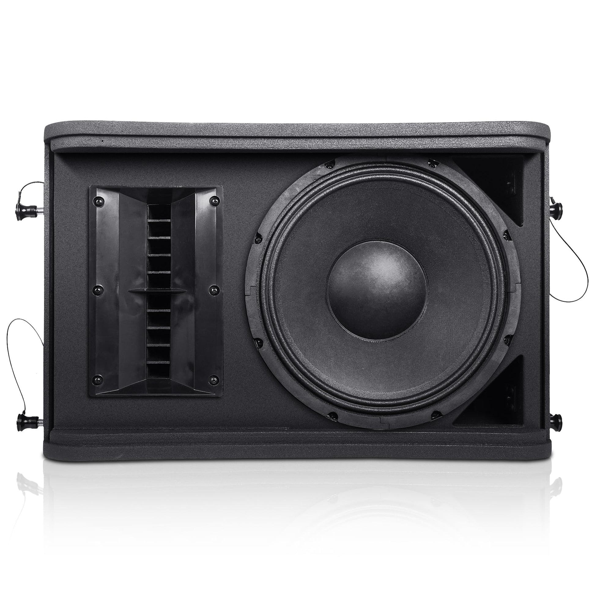 - EASY INTEGRATION AND FLEXIBLE MOUNTING OPTIONS: With its built-in rigging hardware, stack up to 4 ZETHUS-112BPW line array speakers together and secure with the included safety pins. The ZETHUS-112BPW line array speaker has multiple flying points and provides flexible mounting or suspension options with the ZETHUS-112FF flying frame (sold separately)