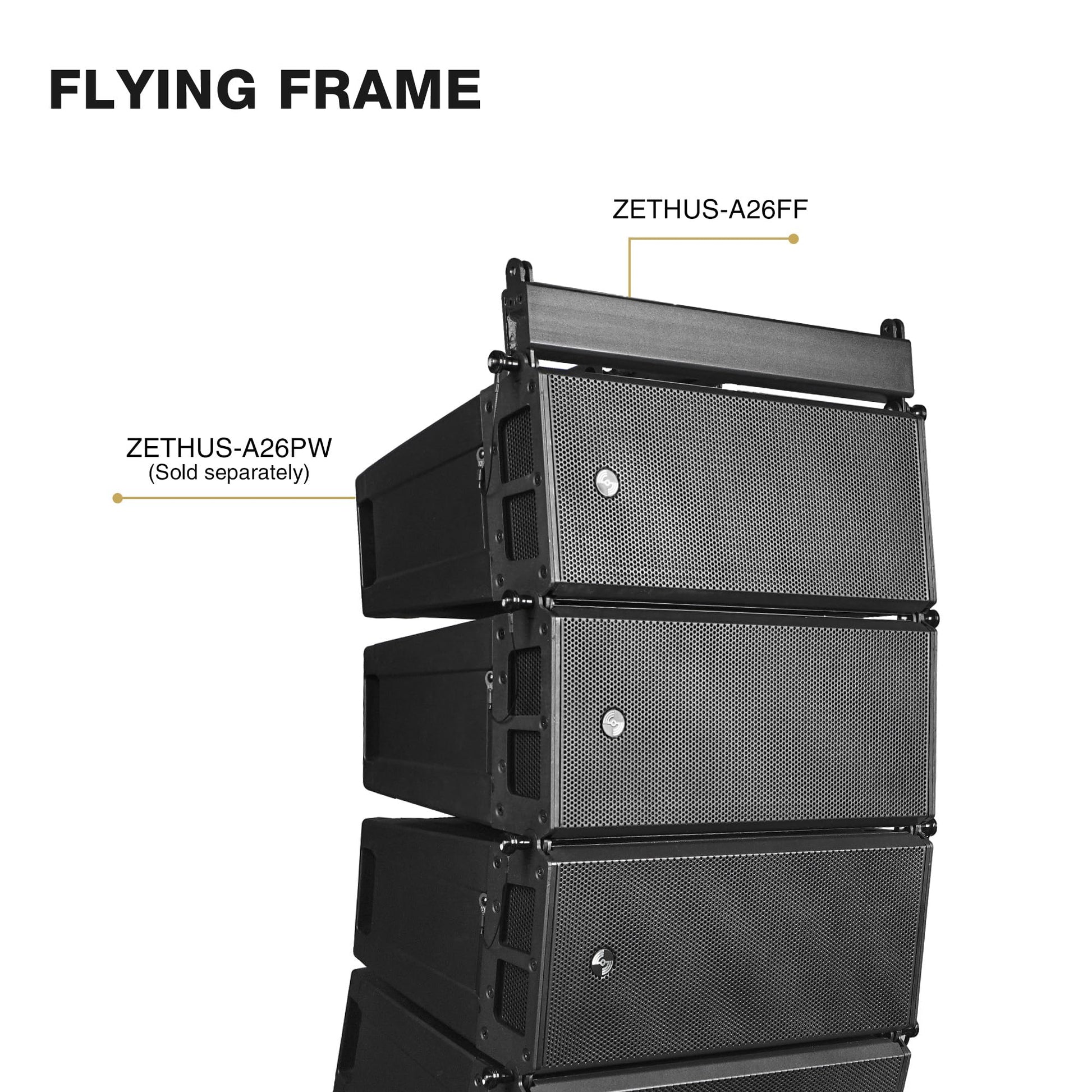 - ZETHUS SERIES ZS-A26X4F LINE ARRAY SPEAKER SYSTEM: The ZS-A26X4F powered line array set includes (4) ZETHUS-A26PW line array speakers, and (1) ZETHU-A26FF flying frame—offering a comprehensive all-in-one line array solution