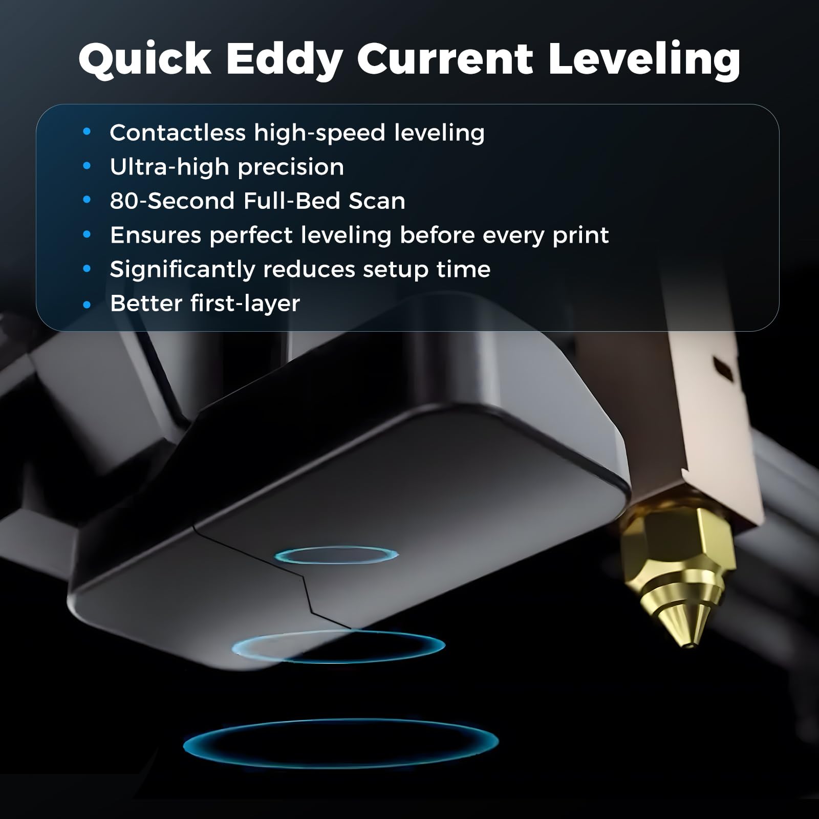 - Eddy Current Sensor: Advanced Eddy Current Scanning system that delivers high-speed, contactless bed leveling with exceptional accuracy. It detects even the smallest surface deviations to ensure a perfectly leveled bed before every print. By utilizing eddy current scanning and pressure-sensing touch points for automatic bed calibration, achieving a perfect first layer becomes effortless, requiring no action on your part