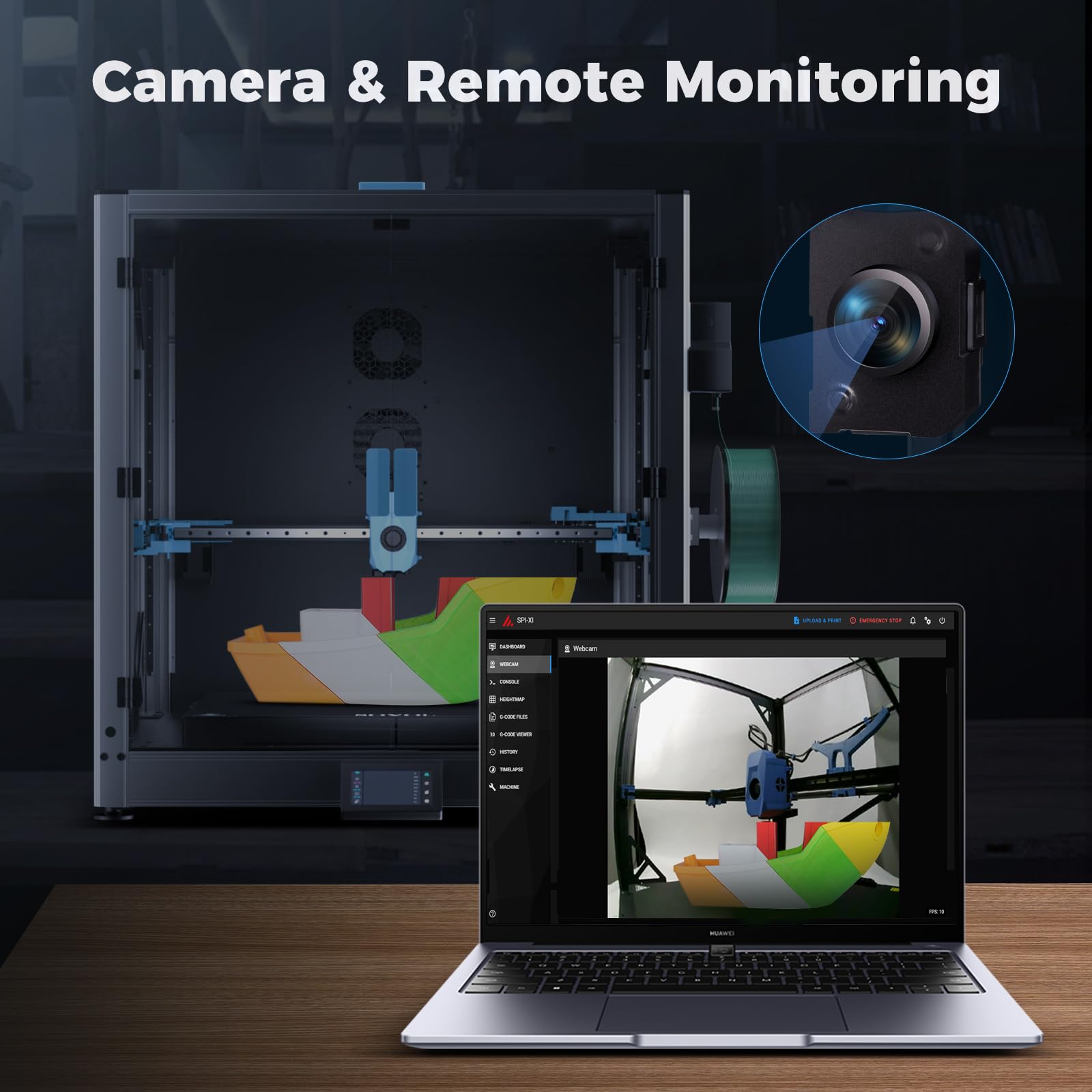 - Camera & Remote Monitoring: Sovol SV08 Max comes equipped with a built-in 1280×720 HD camera, enabling seamless remote monitoring, time-lapse recording, and integration with Obico for advanced cloud-based control and intelligent print failure detection