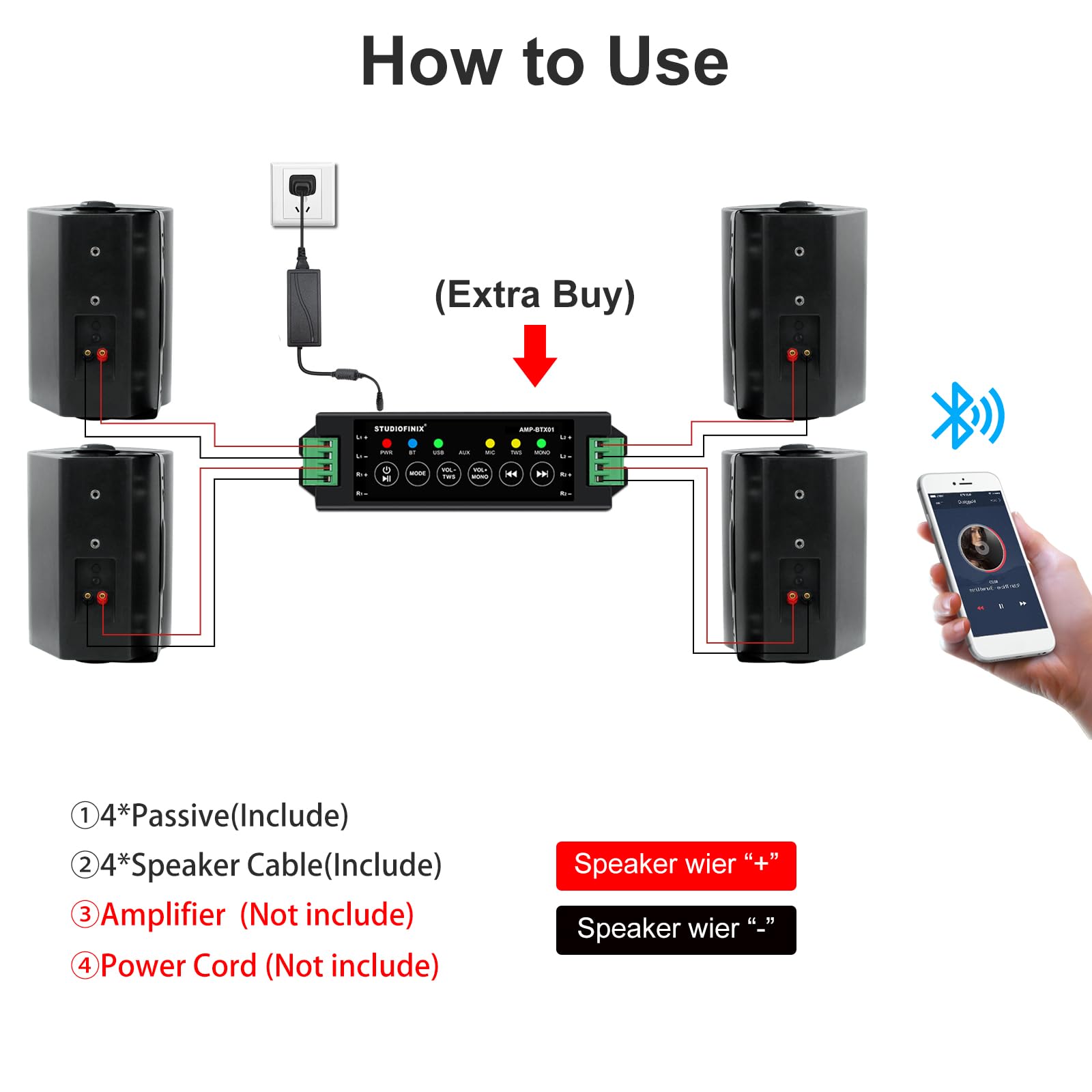 - *Notes: The speakers are passive, and the package only includes speaker cables, manual or power cords is not included.