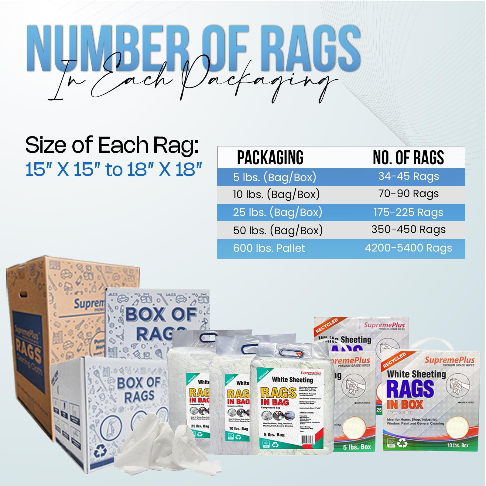 SupremePlus Recycled White Sheeting Cleaning Rags (600 lbs. Pallet 120x5 lbs. Box) โ Lint Free White Cotton Cloths for Manufacturing | Automotive | Janitorial | Shop Rags Bulk - Multipurpose
