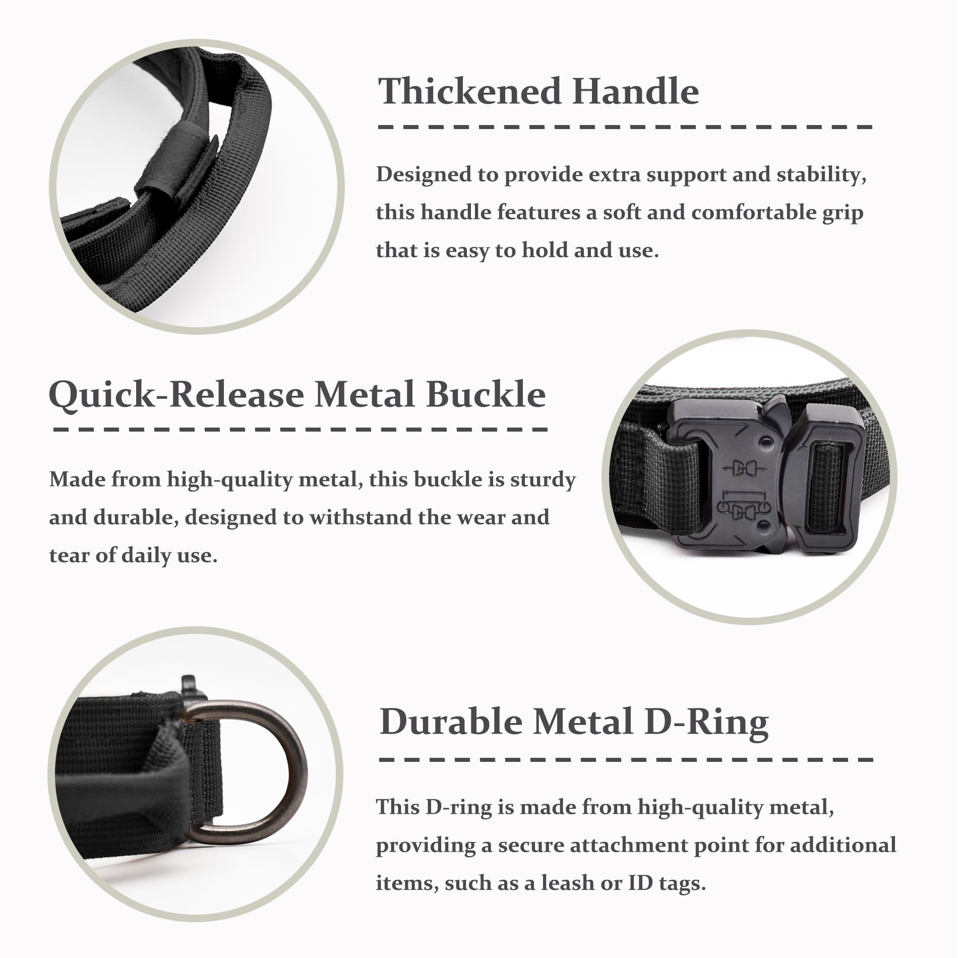 - 【CONTROL HANDLE】Adjustable Nylon Dog collar has special control handle, can efficiently control your dog when training, patrolling, walking, jogging, hunting, running, it’s perfect for medium and large dog.