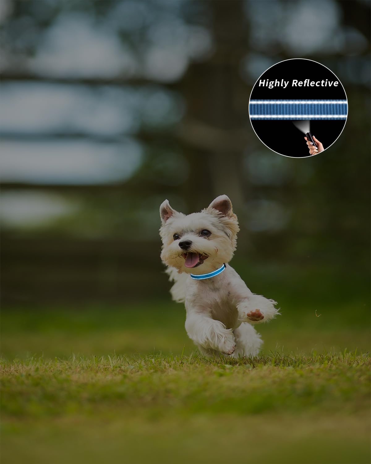 TagME Dog Collars for Small Dogs, Reflective Nylon Pet Collar with Quick Release Buckle, Small Dog Collar for Boys, Sky Blue, 3/8" Width