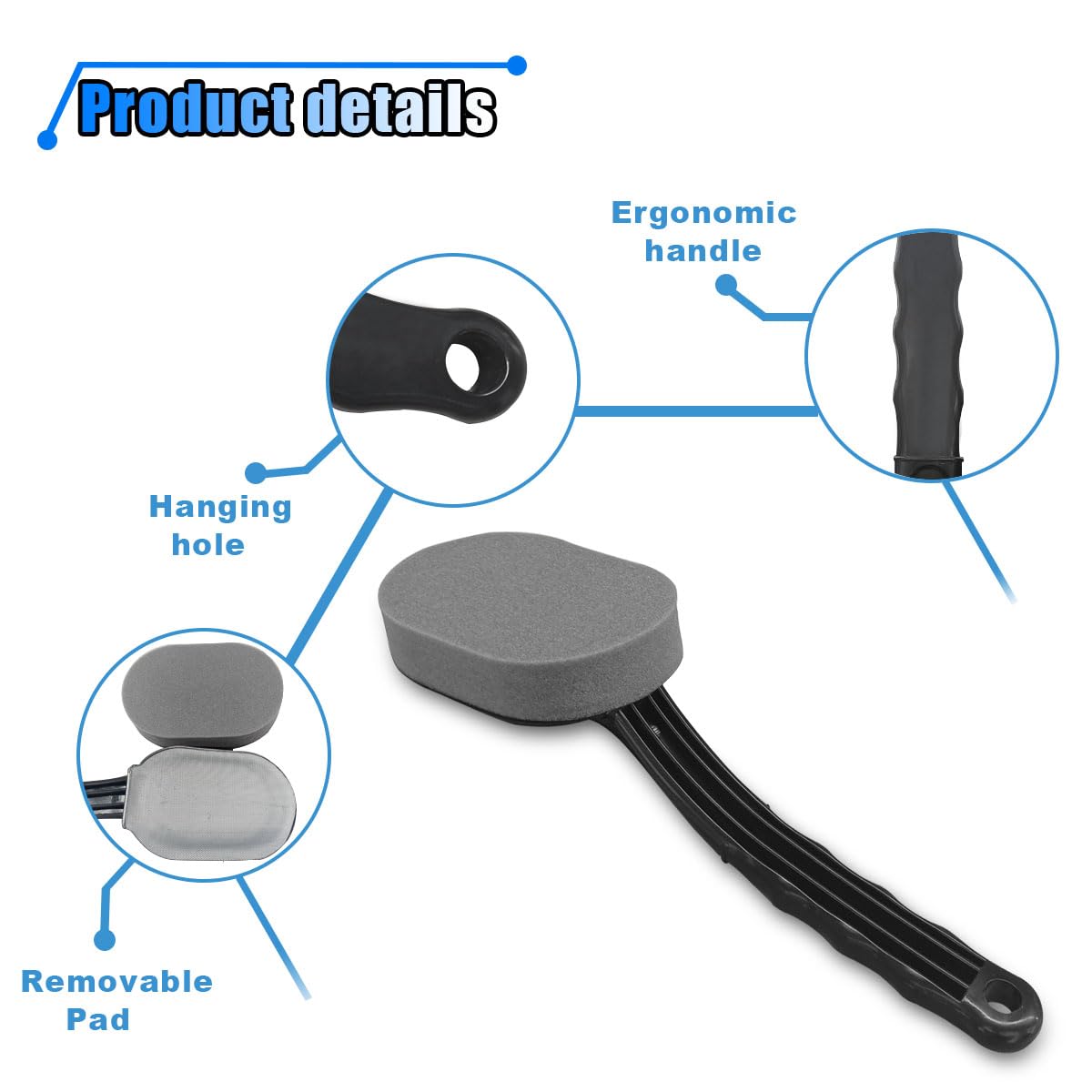- 【Handle】: The car tire dressing applicator has an ergonomic curved handle that provides excellent grip comfort and non-slip performance, effectively reducing hand fatigue during prolonged use. There is also a hanging hole at the end of the brush so that it can be easily hung and stored when not in use.