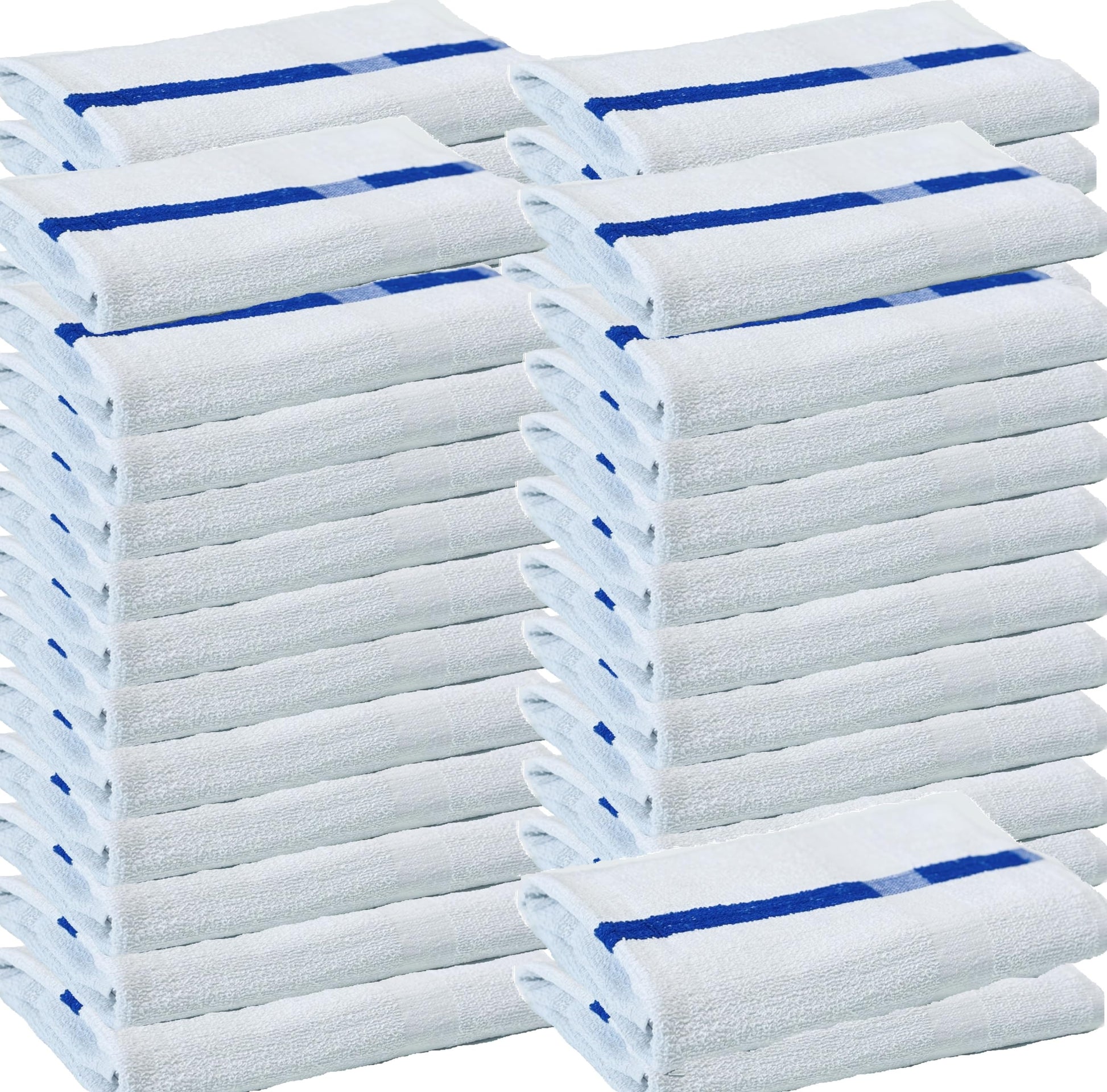 Towels N More 24x48 Soft Poolside Towels - 48 Large Super Absorbent Pool Towel White and Blue Center Stripe - Ideal for Home, Pool, Spa, Gym, Hotel, Motel Rental Room Use - 100% Cotton Bath Towels