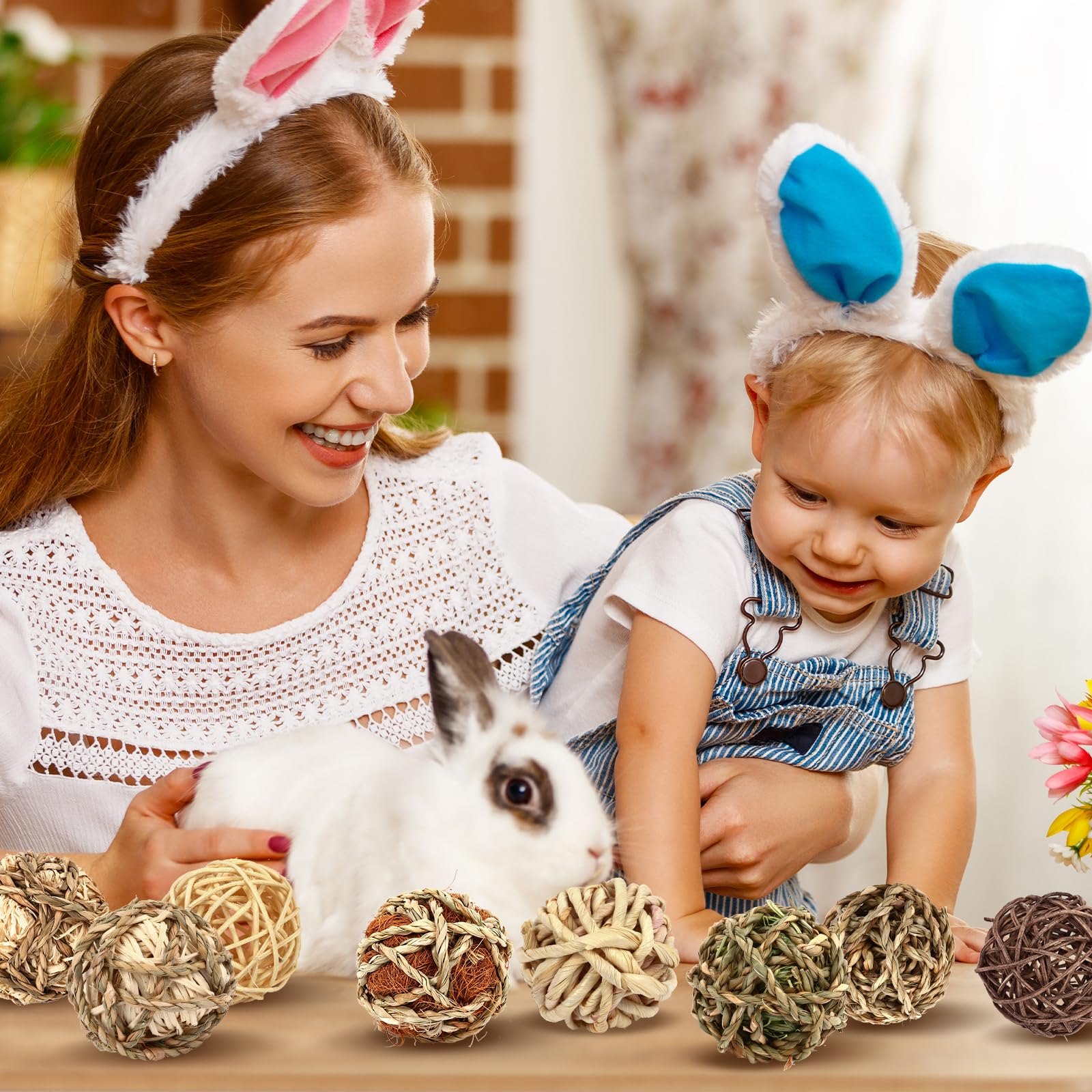 - ✨【Perfect Combination】Our bunny chewing toy set includes 8 grass balls of different texture, 1*Skinless Rattan Ball, 1*Brown Skinless Rattan Ball, 1*Seaweed Ball, 1*Corn Leaves Ball, 1*Seaweed +Corn Silk Ball, 1*Skinless Rattan +Seaweed Ball, 1*Palm Fibers + Seaweed Ball, 1*Timothy Hay + Seaweed Ball. It's a great gift for furry friends.