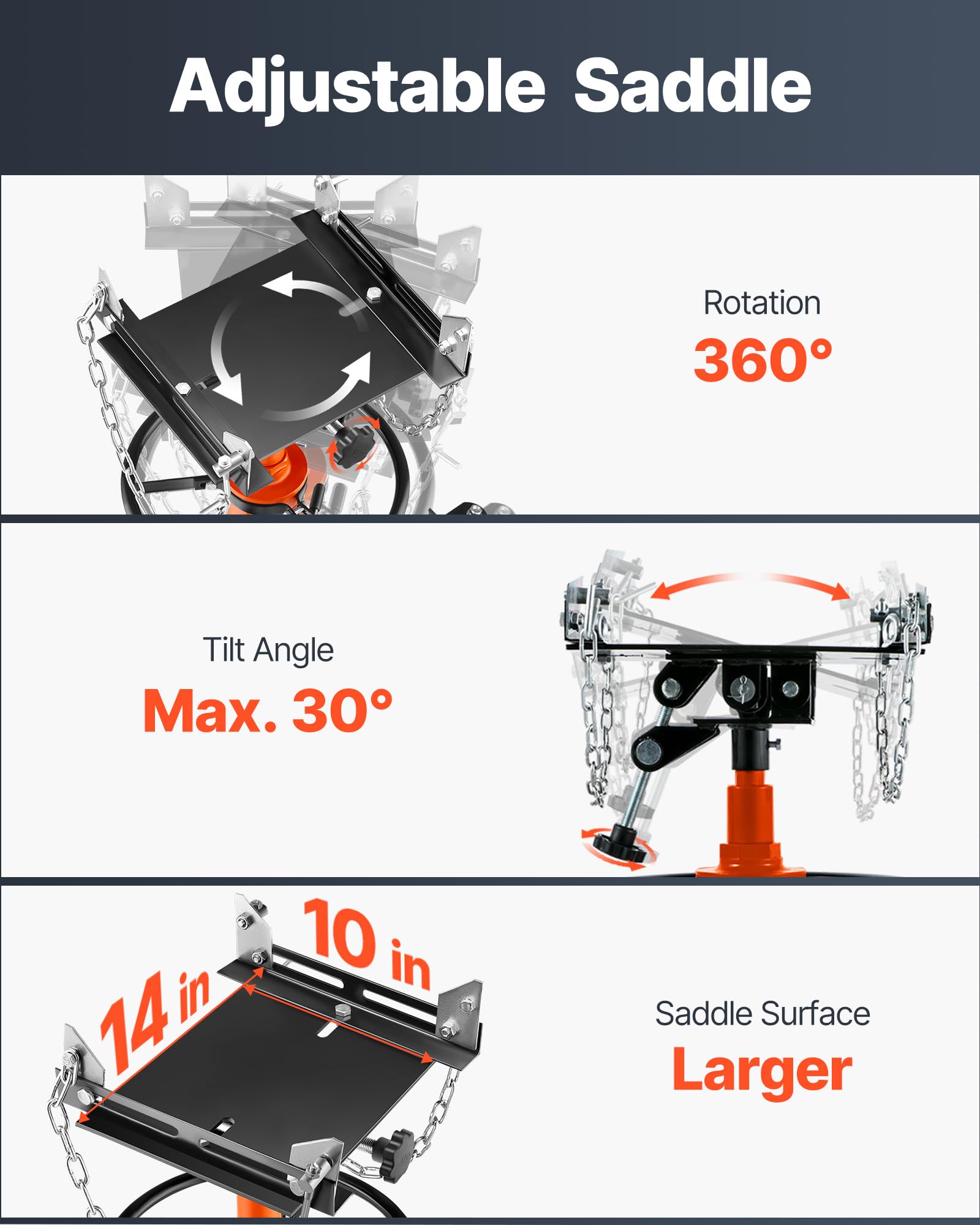 - Reliable and Stable Saddle: Never worry about the saddle shaking when you install or remove your transmission. Our saddle is fixed with upgraded screws, and two bolts can adjust the saddle with an angle of up to 30° tilt to support different shapes of transmissions.