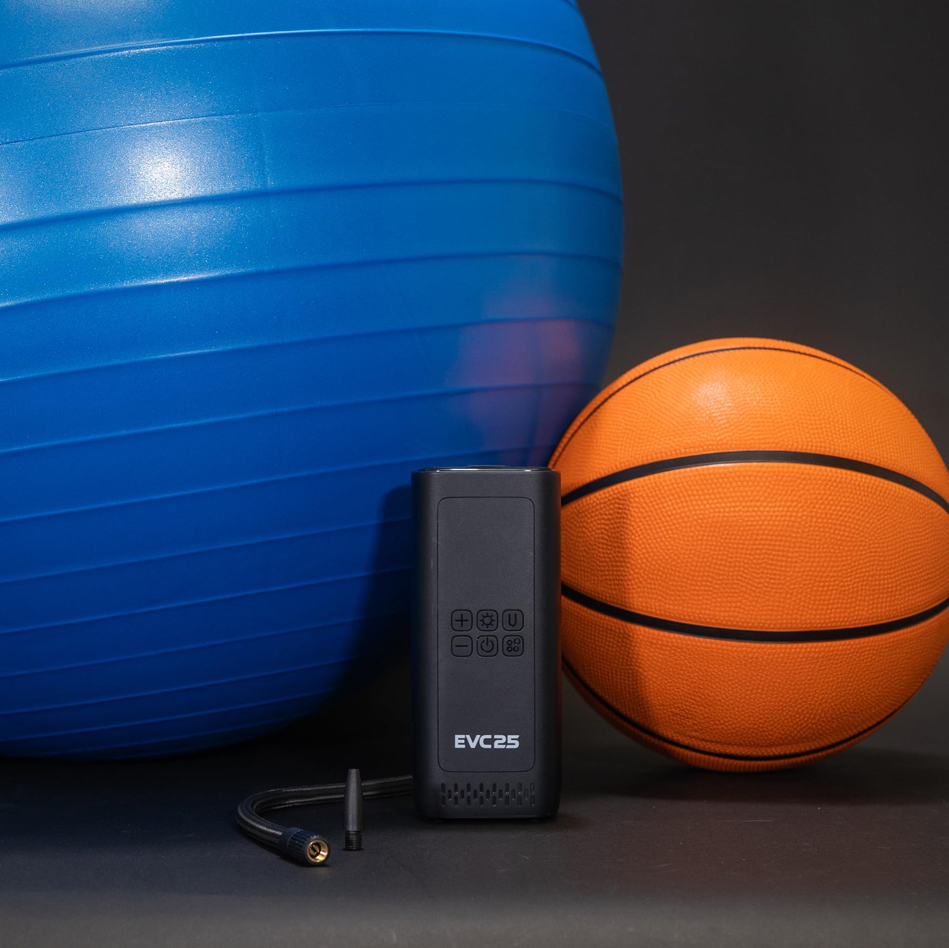 - MULTI-USE AND ACCURATE - The EVC25 is a portable rechargeable air compressor for your car, motorcycle or inflatables. It includes multiple nozzle options to fit various valve types, making it essential for emergency car kits, outdoor activities