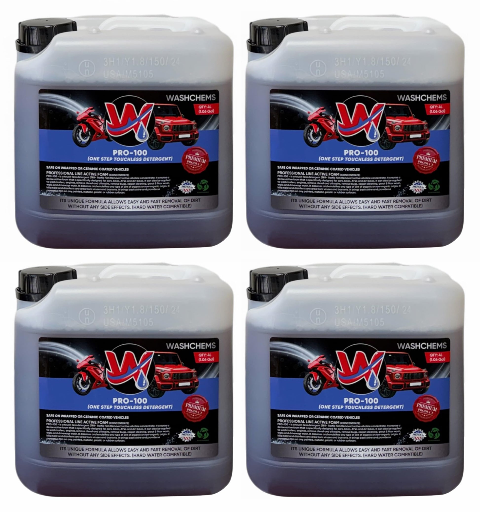 Wash Chems Pro 100 Touchless Car Wash Detergent Soap Concentrate (1 Gal, 128 oz) No Brushing (Heavy-Duty) Commercial Grade Professional Auto Foam Cleaner Great for Trucks & Tractors (4, 1 gallon)