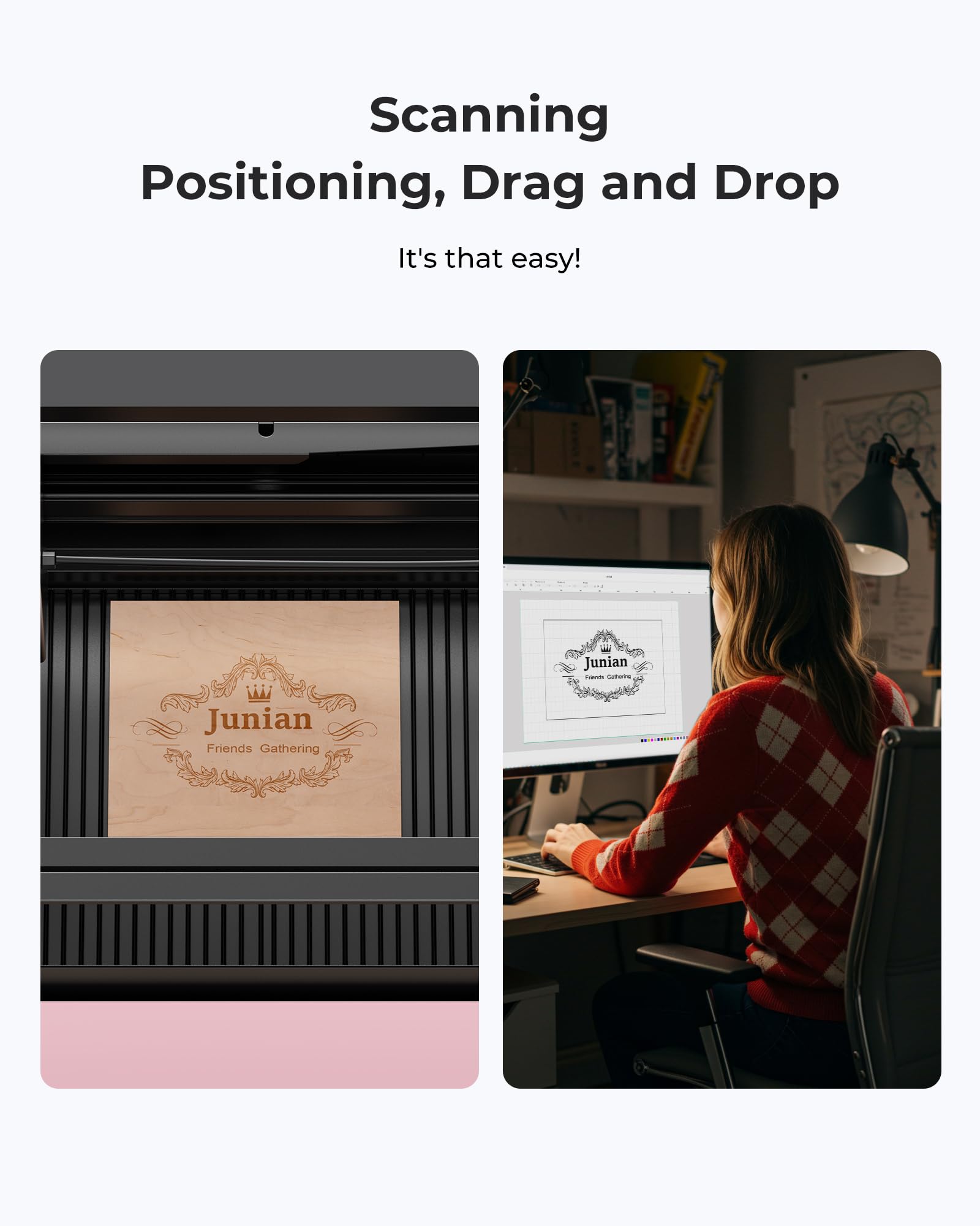 - [TopView Camera Precision Positioning & Auto-Focus]—Vista's smart HD TopView camera ensures flat scanning and 100% alignment correctly, providing distortion-free images with minimal thickness perception deviation, which reduces material waste and the learning curve, even super easy for beginners!
