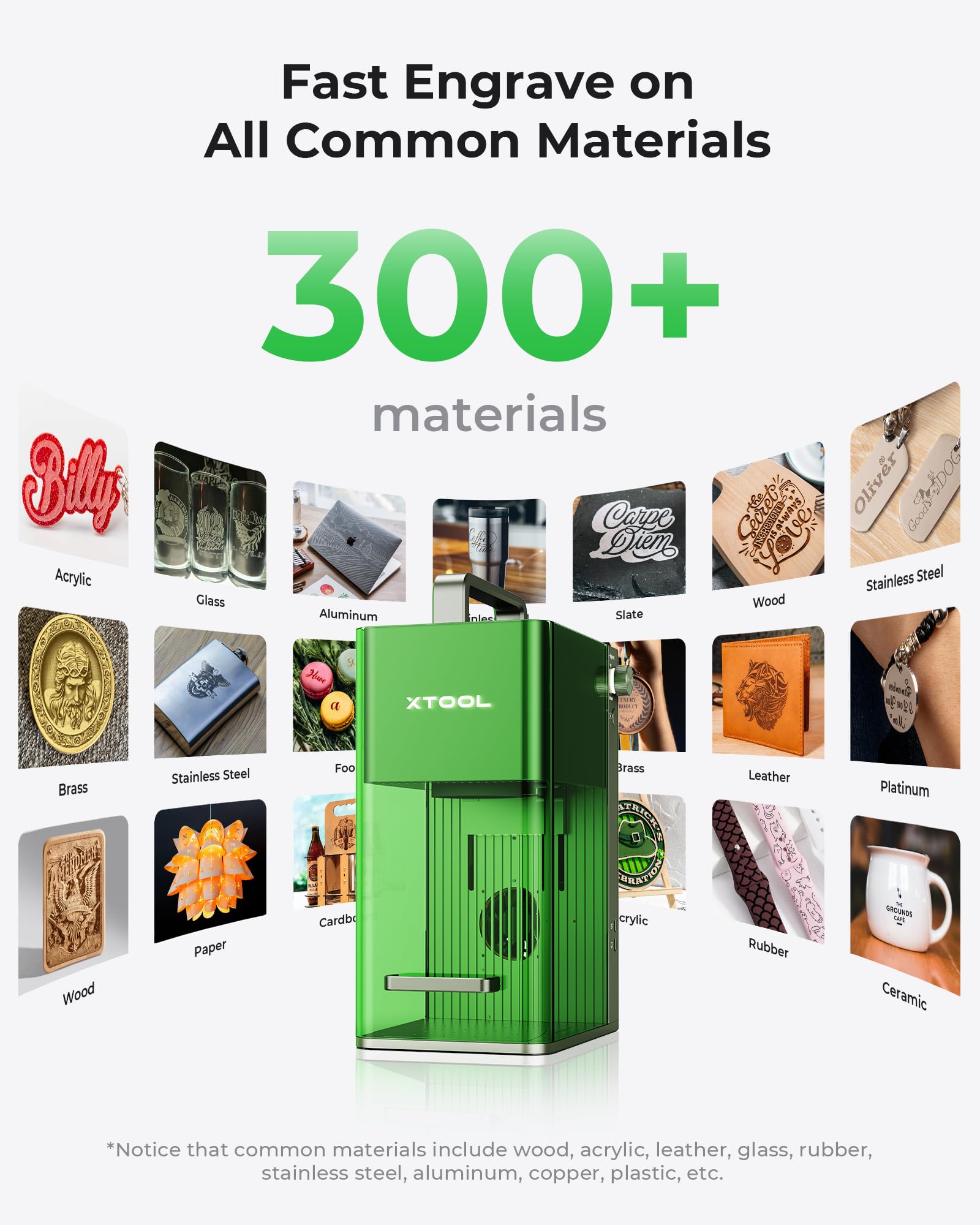 - Dual lasers fit 300+ Materials: The xTool F1 2-in-1 laser engraving machine is the world's first 2W(2000mW) infrared(for all metal materials) and 10W(10000mW) diode laser cutter and engraver machine(for wood, acrylic, etc). This laser engraver can cut 10mm wood and 6mm acrylic. Thus, this laser engraving machine allows you to customize business cards, wood blanks, dog tags, tumbler laser marking, and even do rust removal.