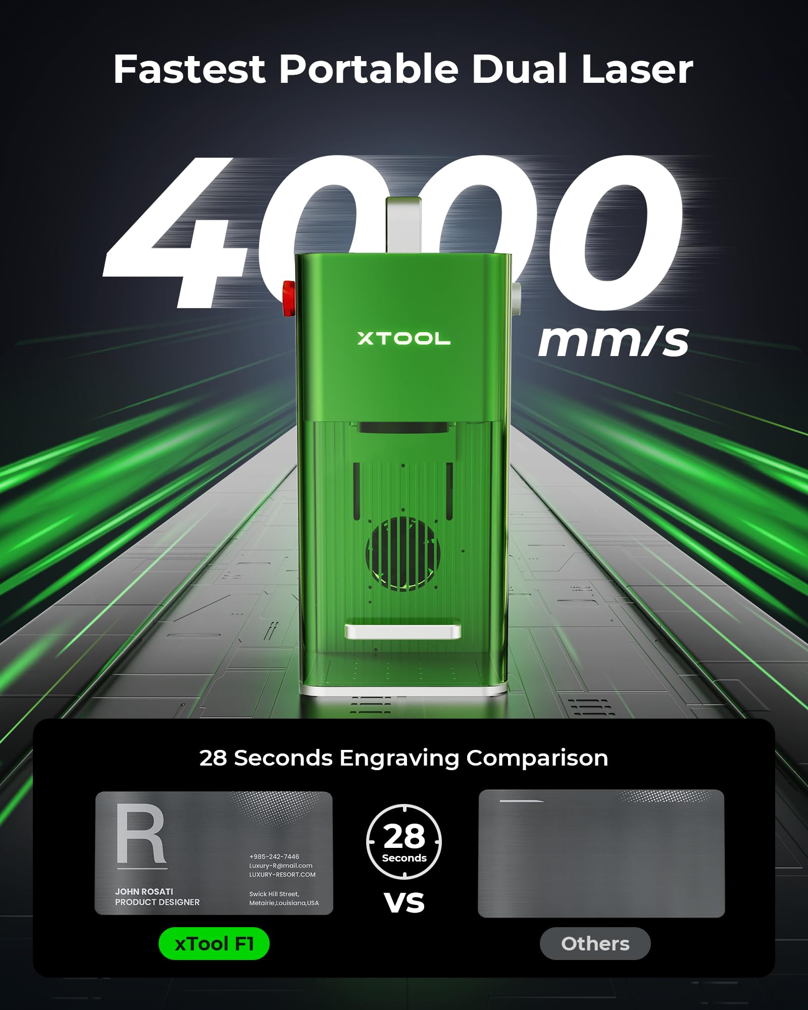 xTool F1 2-in-1 Dual Laser Engraver, 4000mm/s Lightning Speed Portable Laser Engraving Machine, Laser Engraver for Jewelry, Metal, Wood, Leather, etc