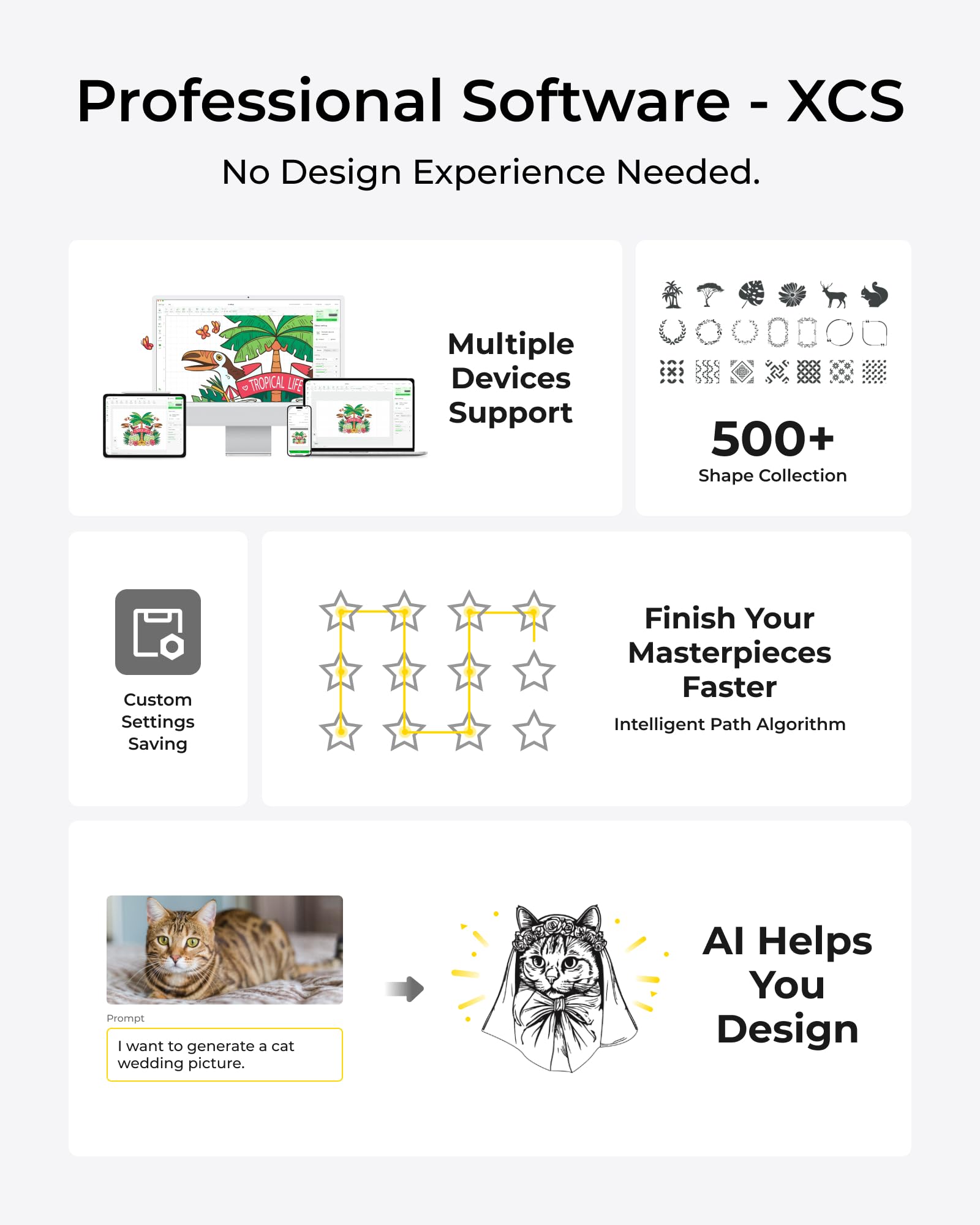 - Safety First: xTool P2S ensures safety with AI fire detection, automatic lock, and emergency stop. Its enclosed design, adjustable air assist, and 233.3 CFM exhaust fan provide efficient smoke removal for cleaner, safer operations in this advanced laser engraver and cutter machine.