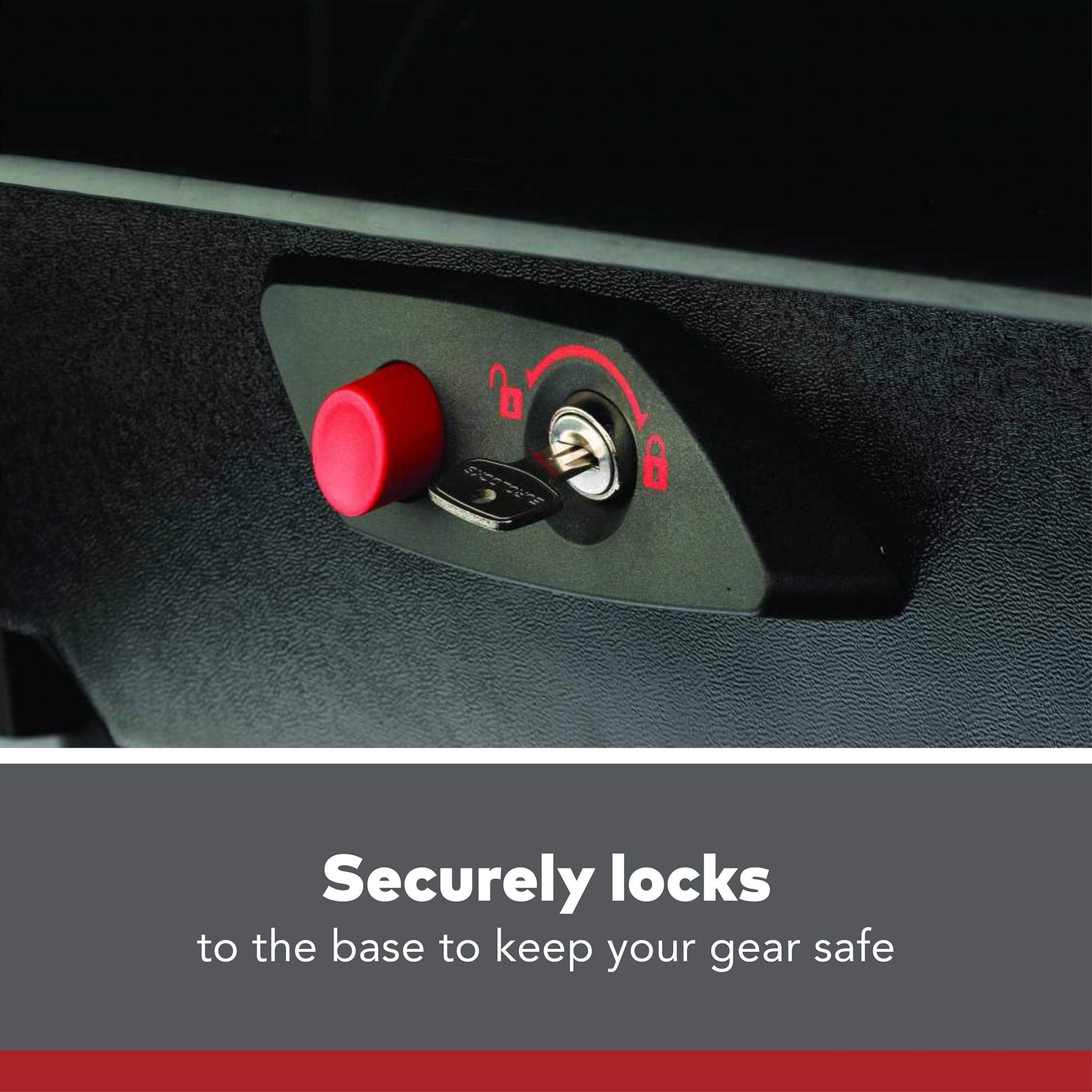 - Enhanced Security: Push button security ensures the lid is securely fastened to the base, keeping your gear safe; Includes SKS locks for added protection