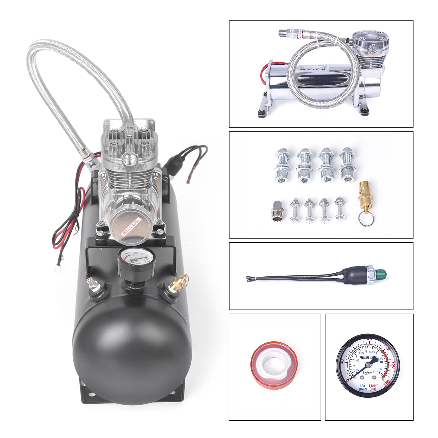 - 【Universal】This Air Compressor&Train/Air Horn Tank is designed for use with most high-pressure air horn or Air Ride Suspension.