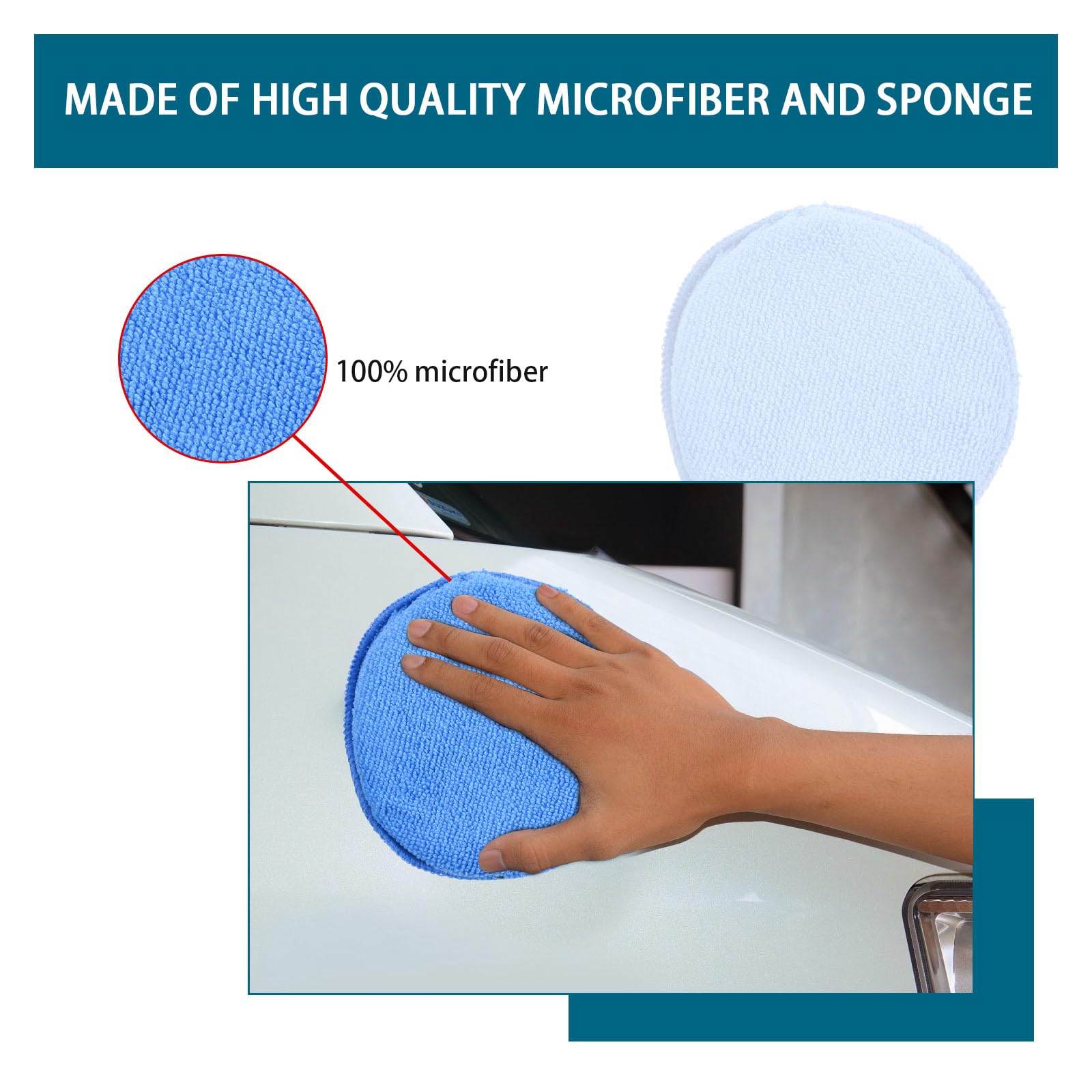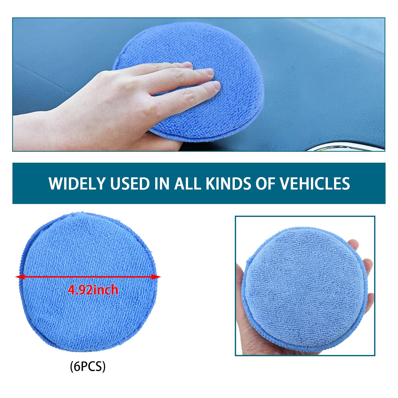 Ziciner 6 Pack Car Microfiber Applicator Pads, Car Wax Foam Buffing and Cleaning Pads, Tire Shine Applicator, Ultra Soft Wash Sponge for Cars, 5 Inch Diameter in Round